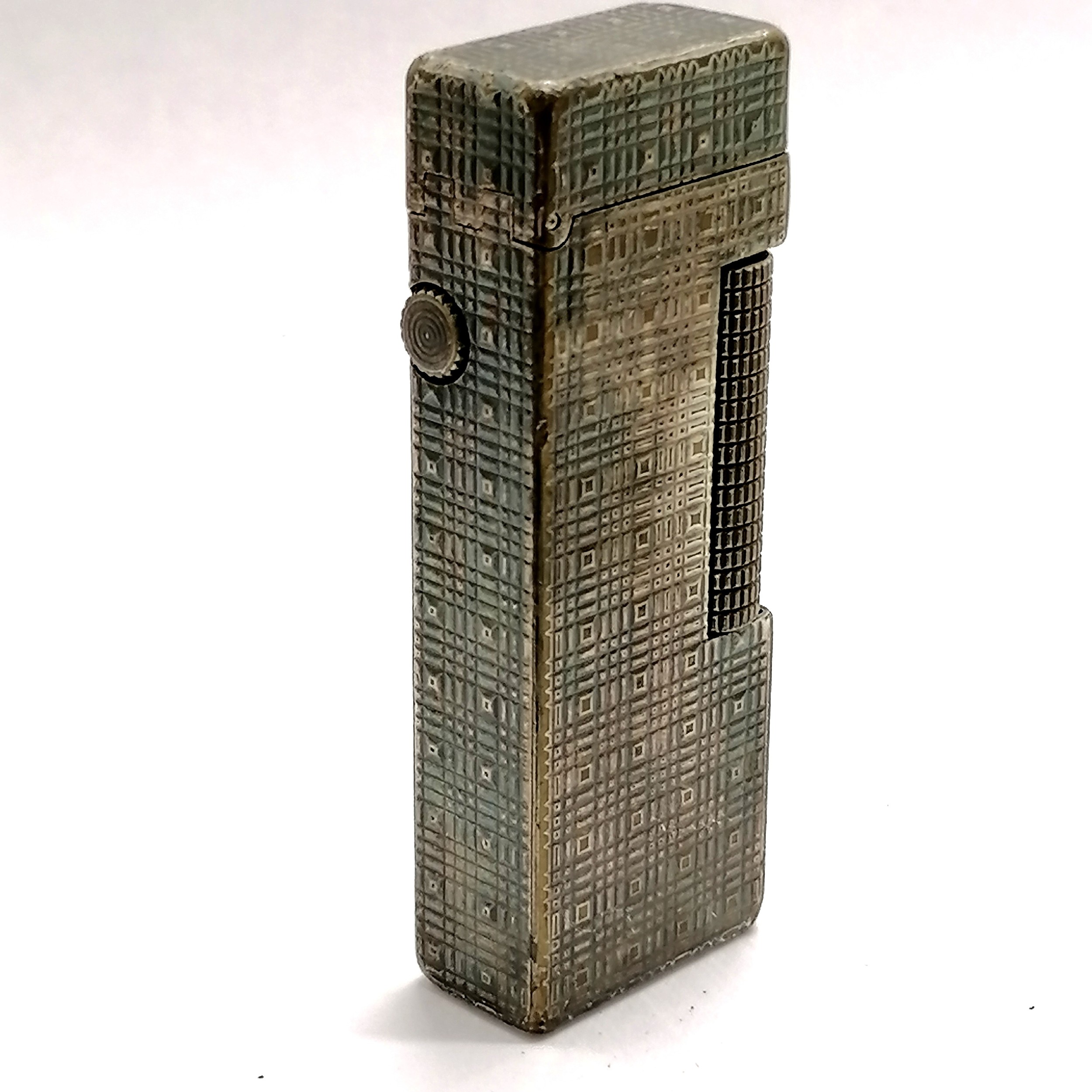 Dunhill silver plated lighter with engine turned detail - 6.5cm long & has obvious signs of use