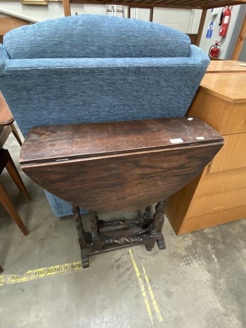 Oak barley twist drop leaf table (73H 74W 65D cm)