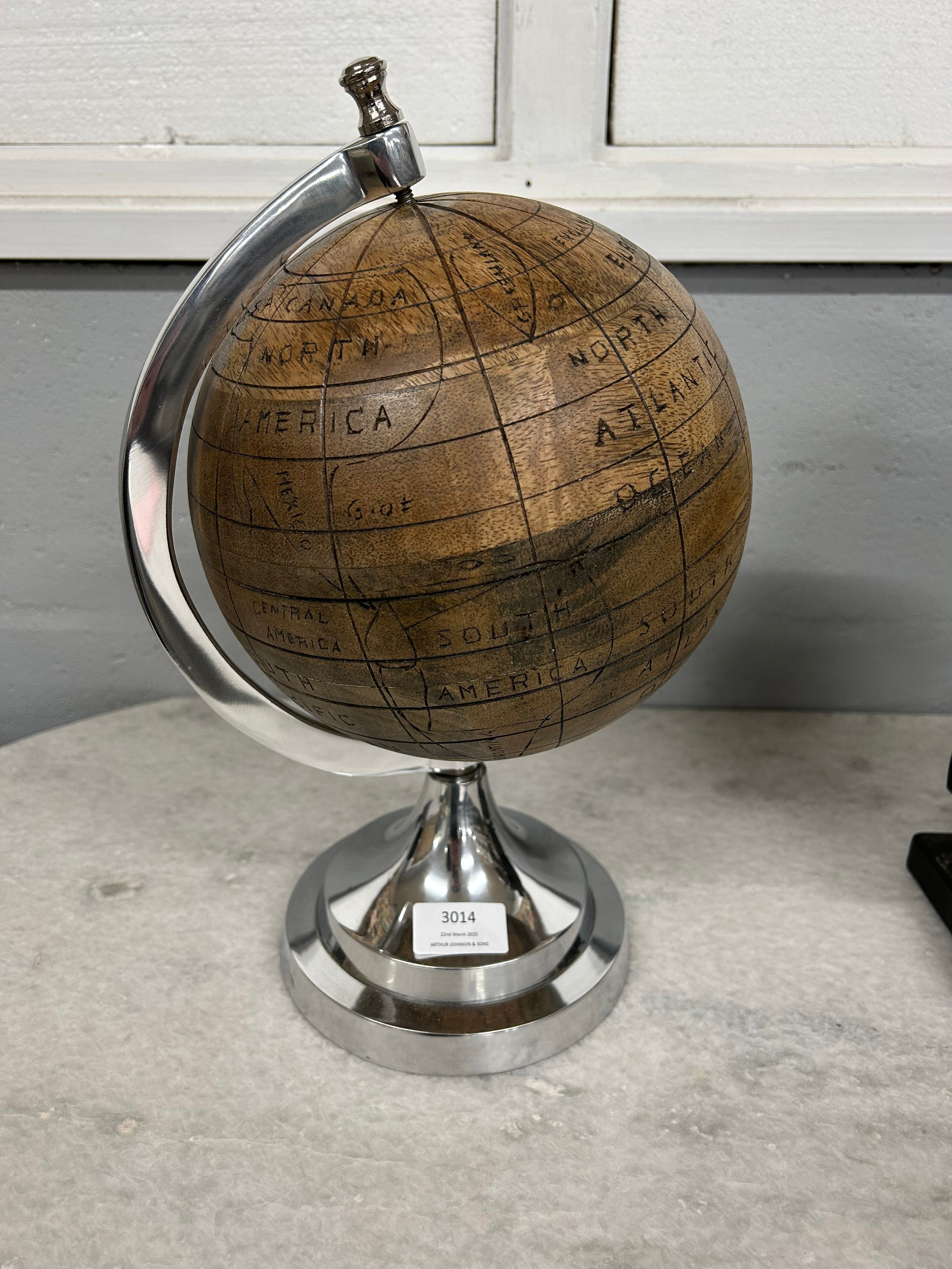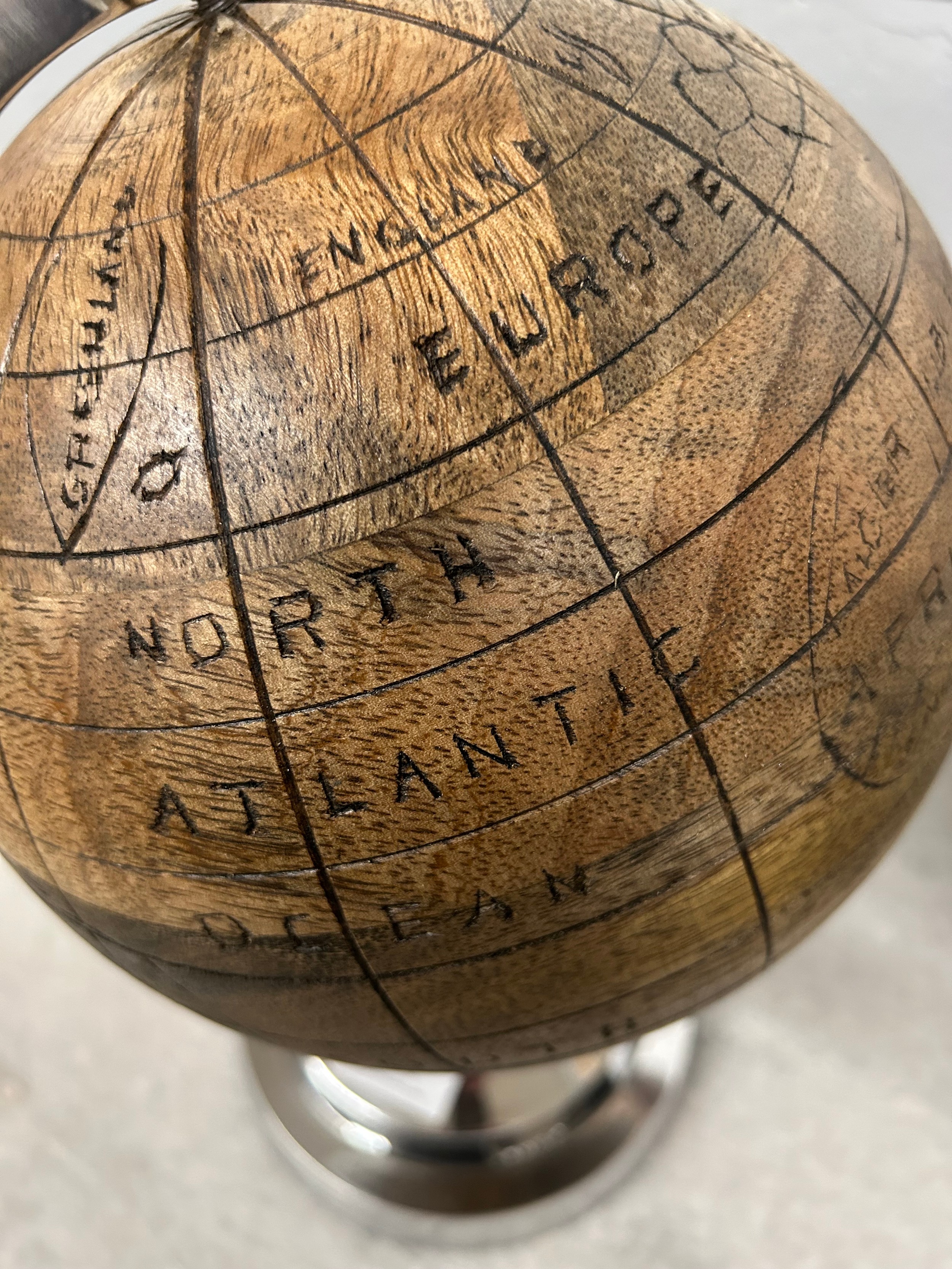 A wooden/chrome globe