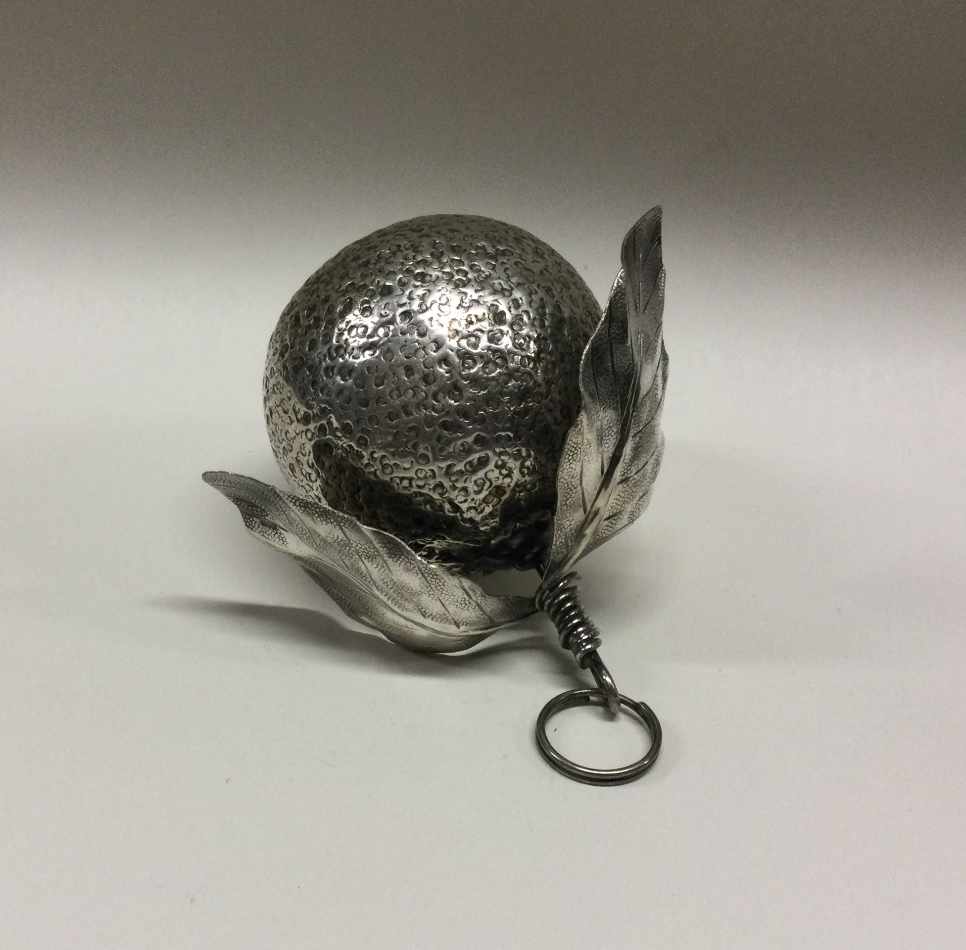 A heavy silver model of an orange. Marked to leaf. Approx. 92 grams. Est. £50 - £80.