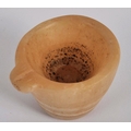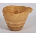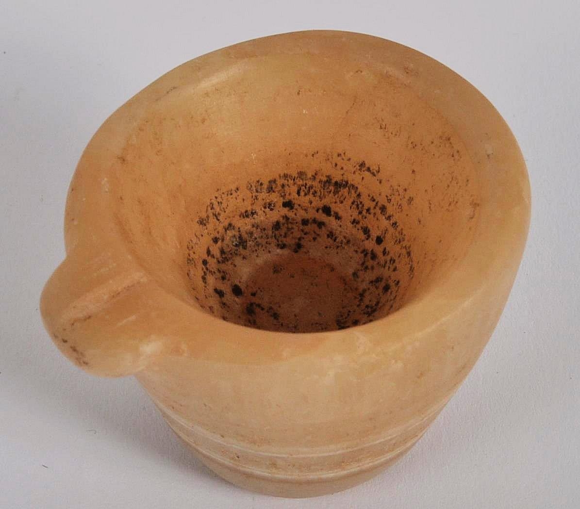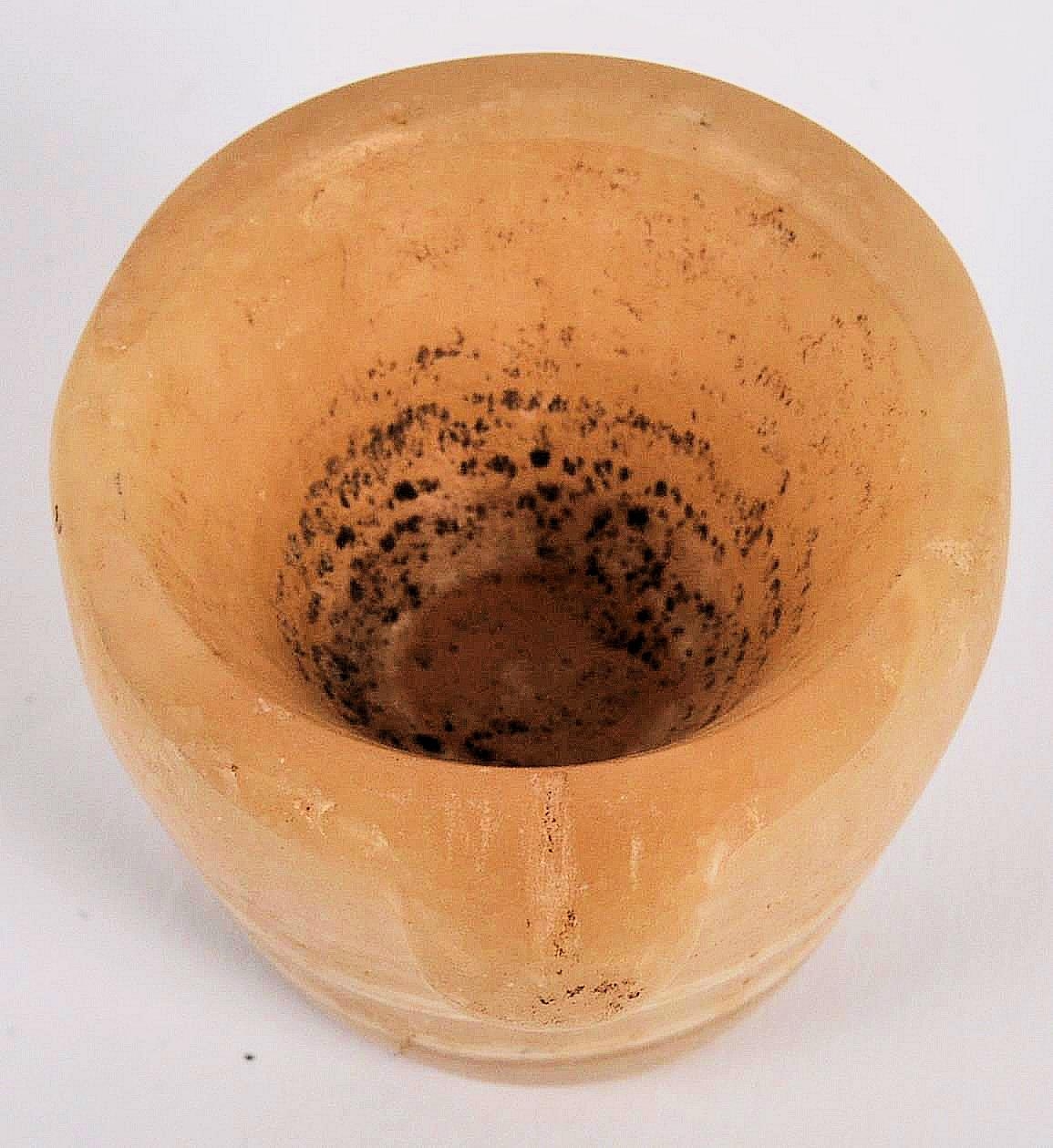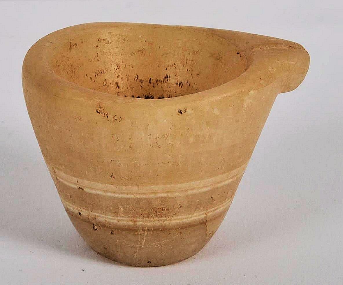 An ancient Egyptian banded agate vessel. Of frustoconical form with a lipped section for pouring. Approximately 4.5cm tall.