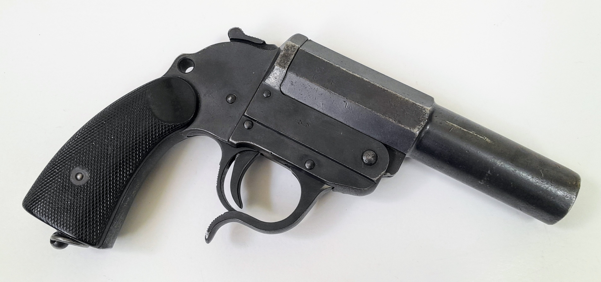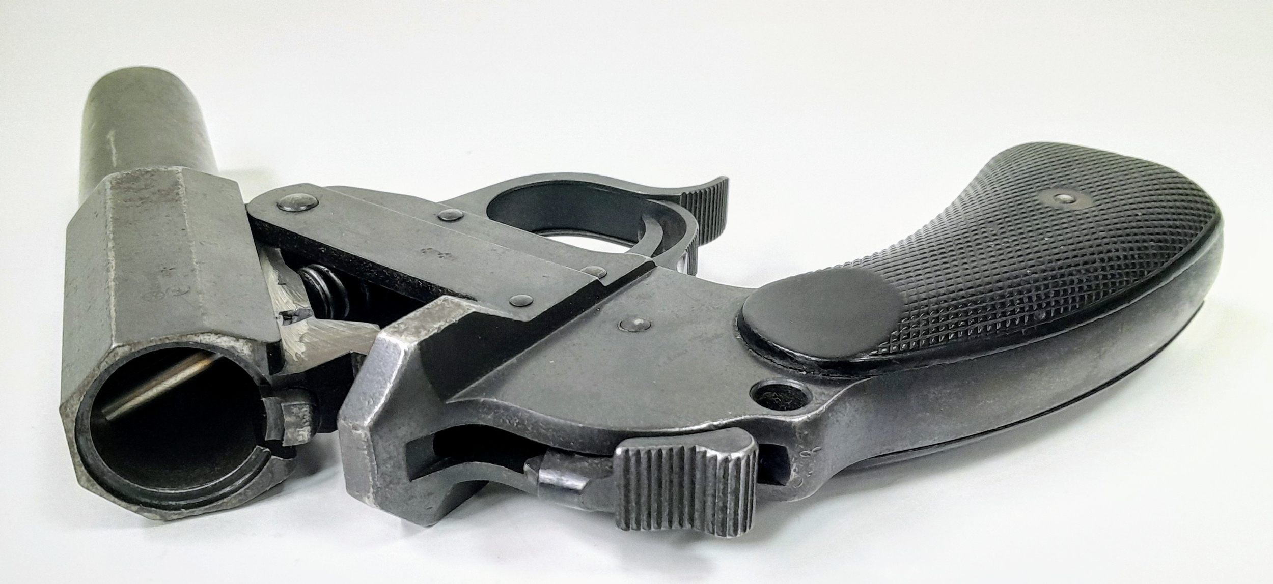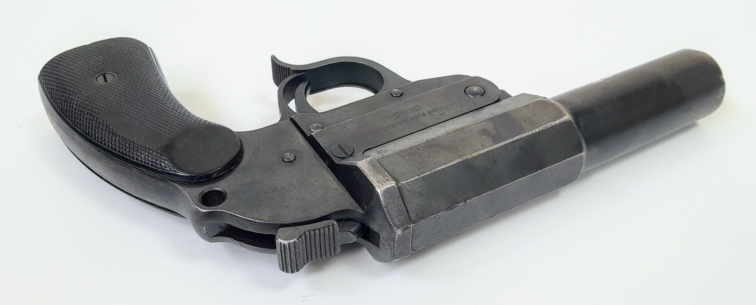 A deactivated Walther single shot flare pistol, 6 inch barrel, 25mm calibre. UK/EU Sales Only - Not Holland. Comes with an EU deactivation certificate.