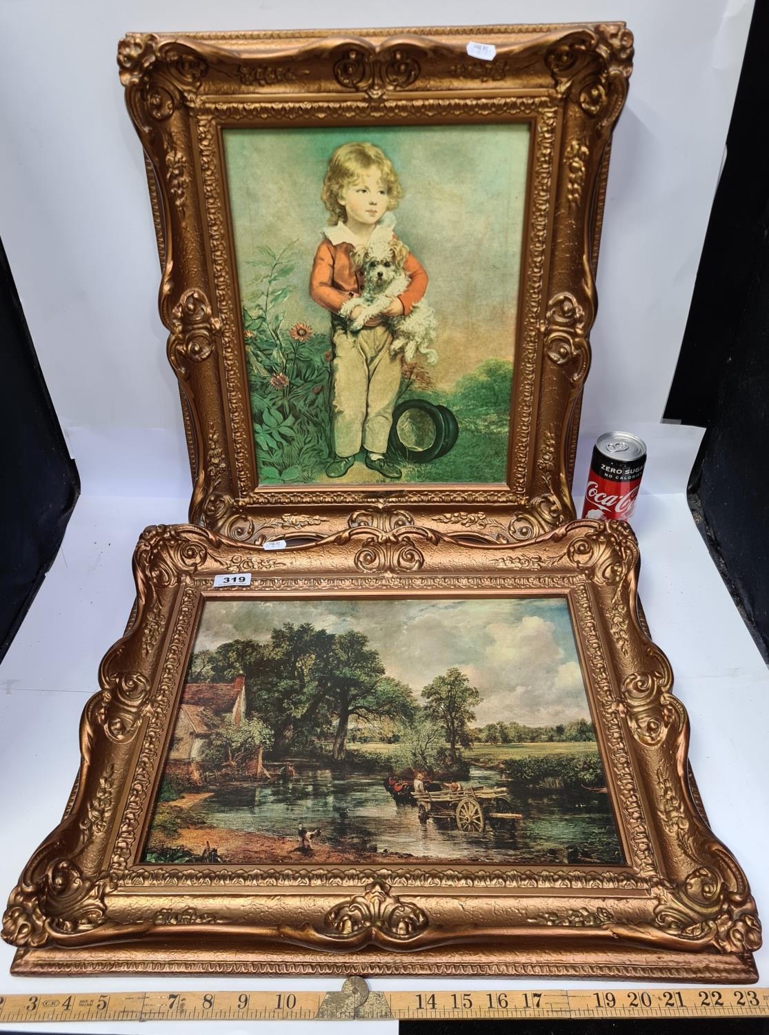 Two Olegraphs of classic images in gilt frames.