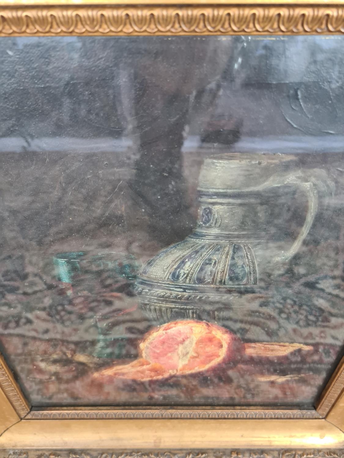 A mid 19th century gilt framed oil painting of still life by E.M Bancroft dated 1869