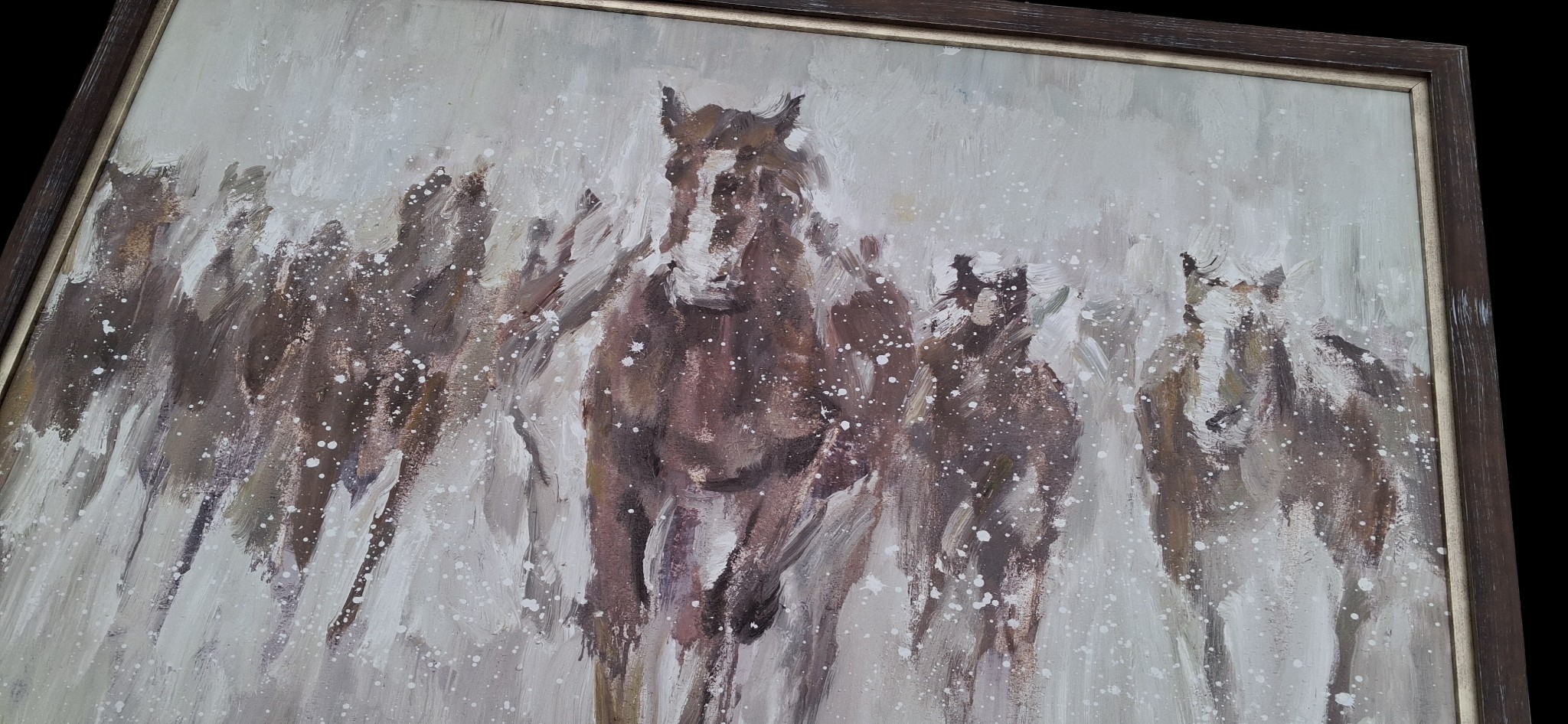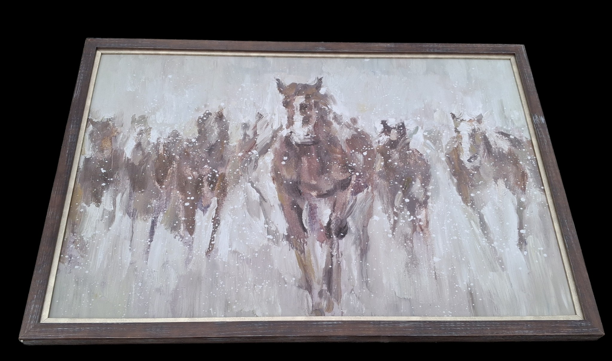 "WILD HORSES IN THE SNOW" HAND FINISHED SLATE PICTURE