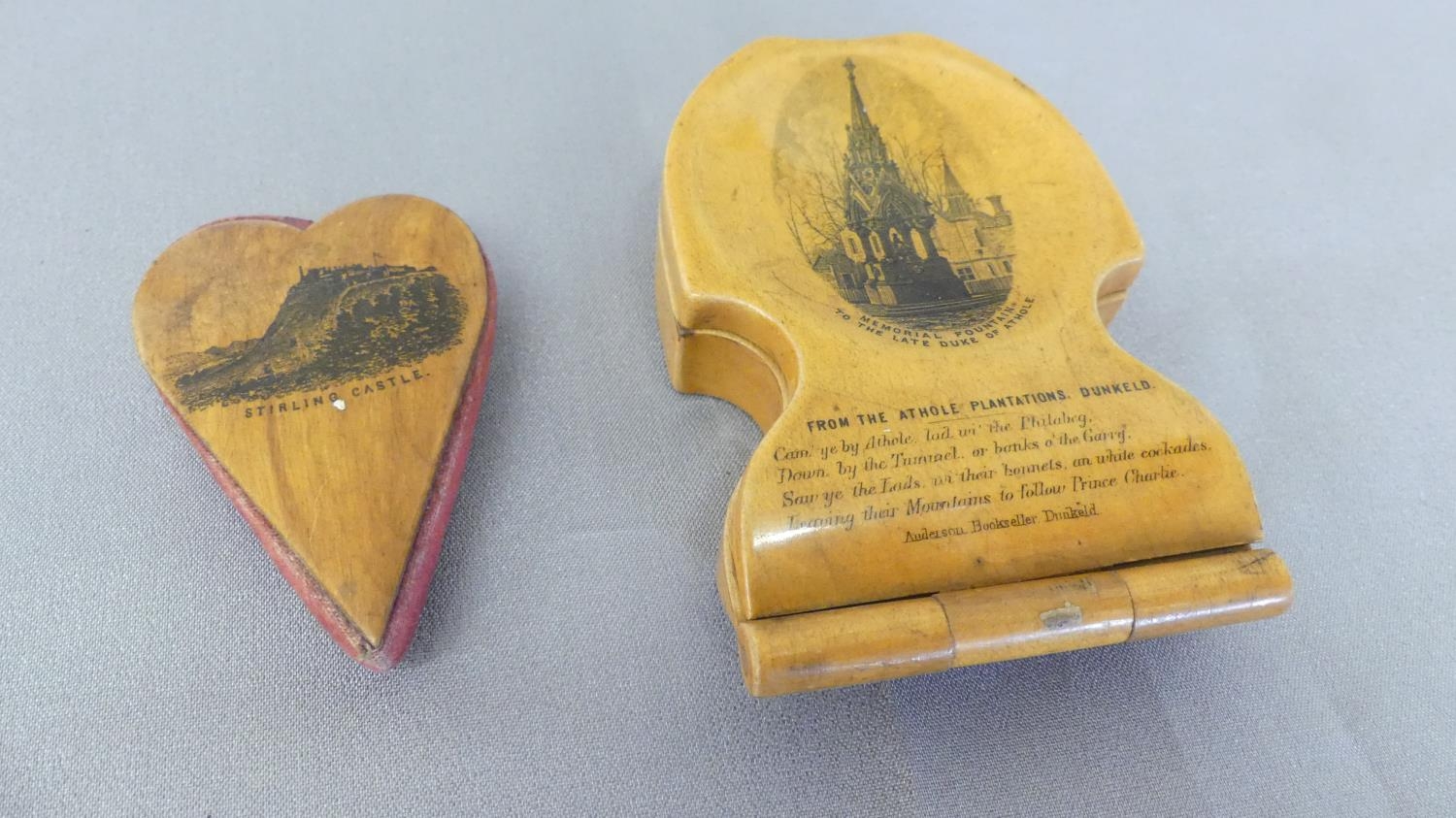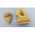 Mauchlineware Pin Cushion in the form of a Heart & similar Pocketwatch Stand.
