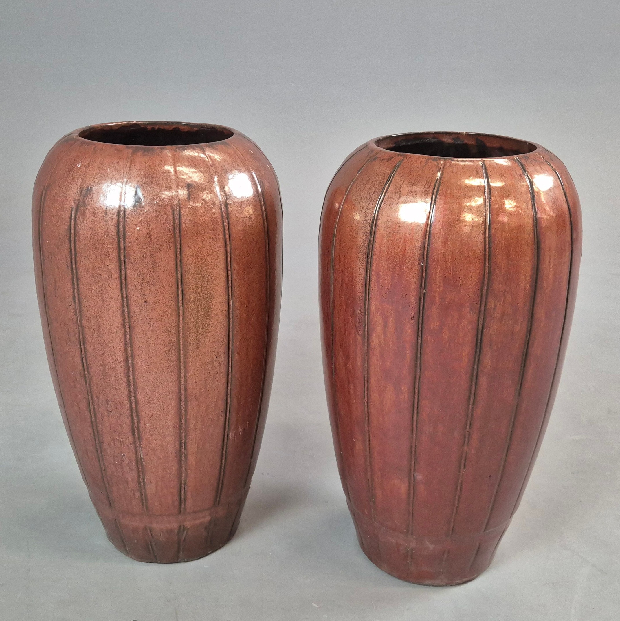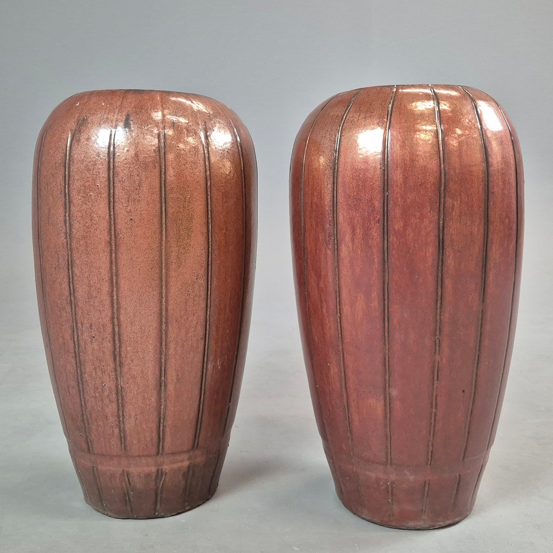 GLAZED PLANTERS, A PAIR. 65cm H approx. (2).