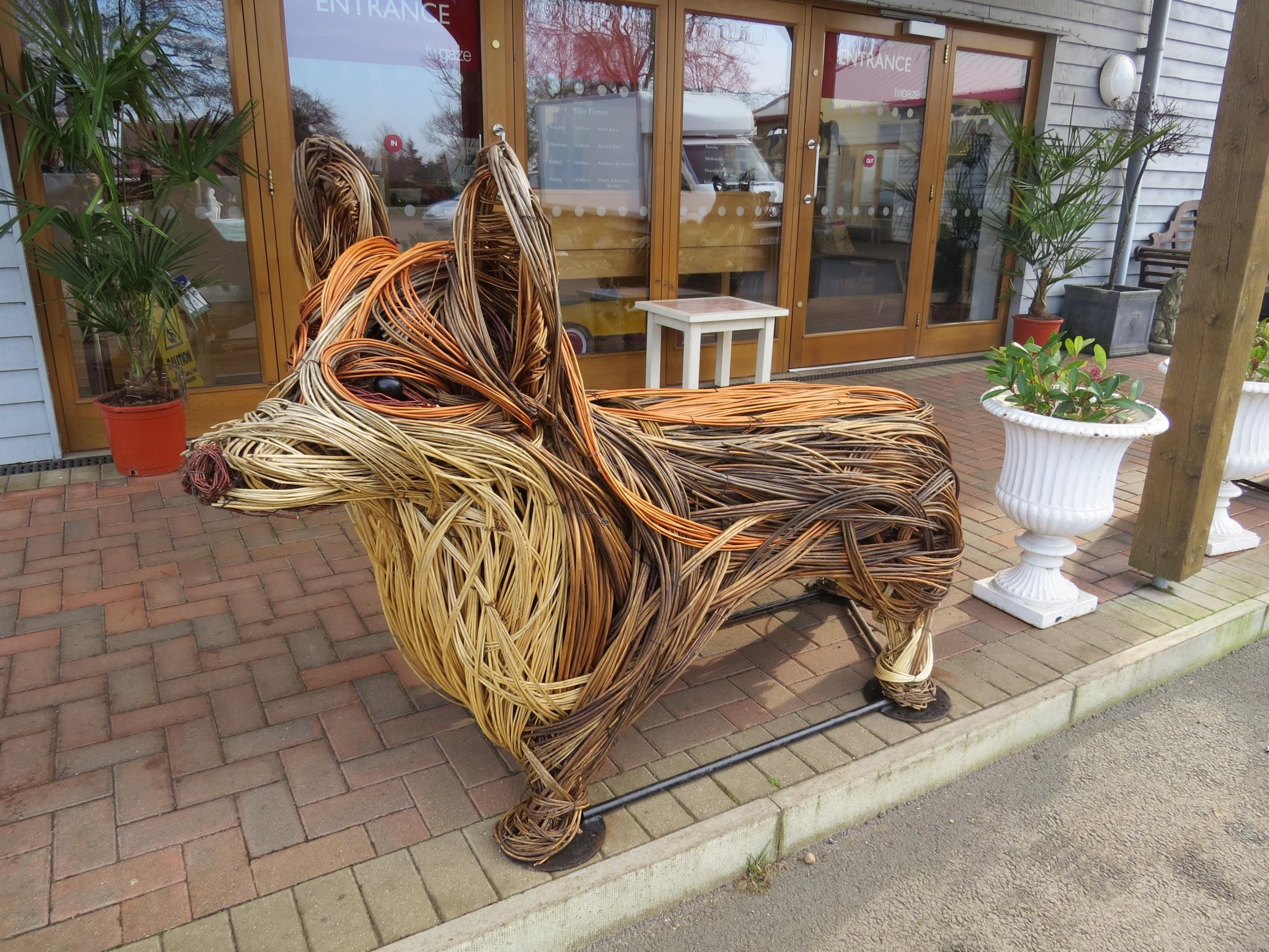 A Tin House oversize willow corgi sculpture by Ali MacKenzie "Winnie" No. 7 of only 7 bespoke editions, height 130cm, length 185cm with certificate of authenticity (R) £200 MEADOW