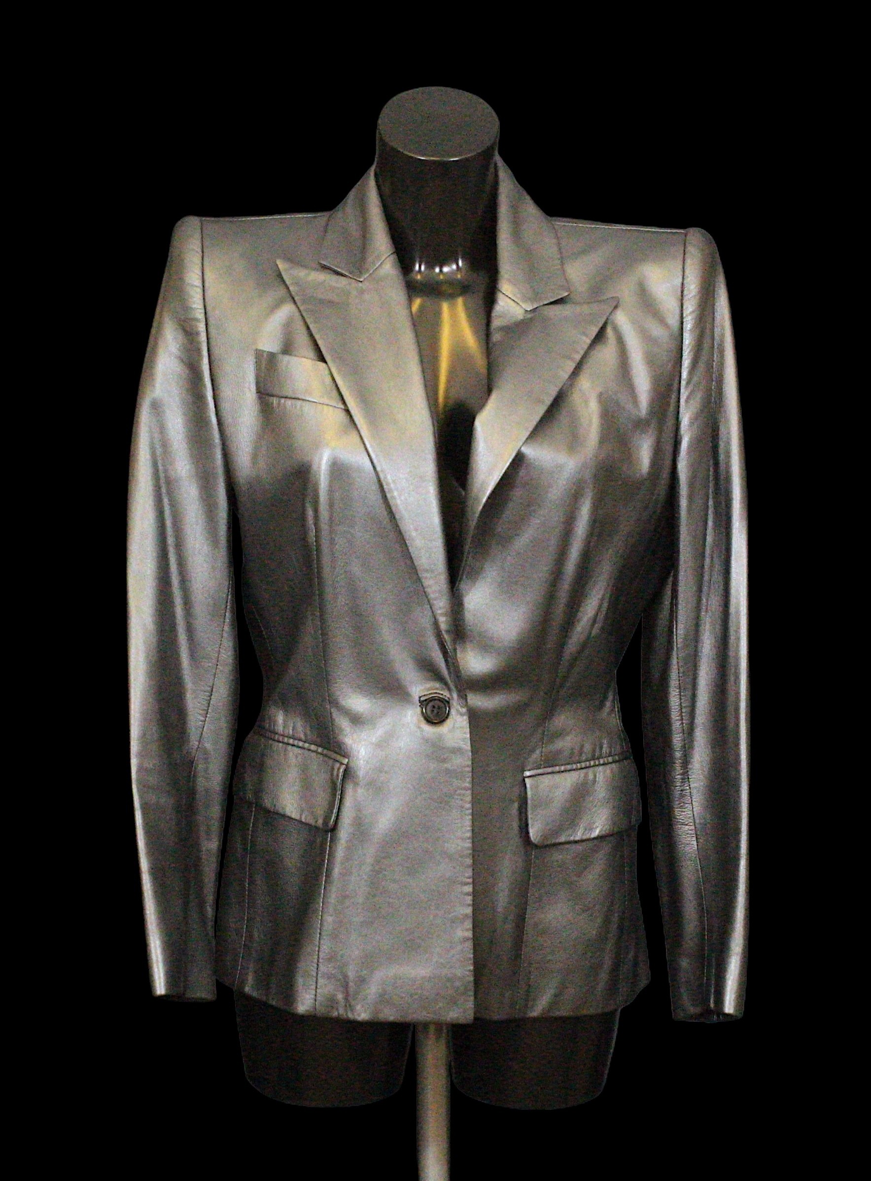 in steel / pewter leather, made in Italy, labelled size 46 (under arm to underarm flat measures 46cm)