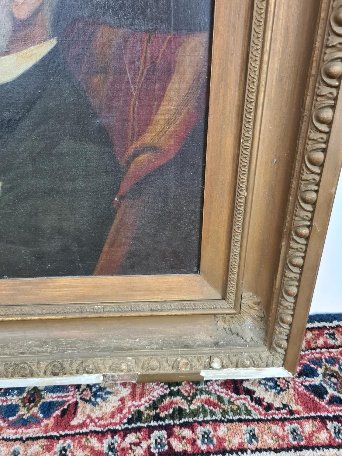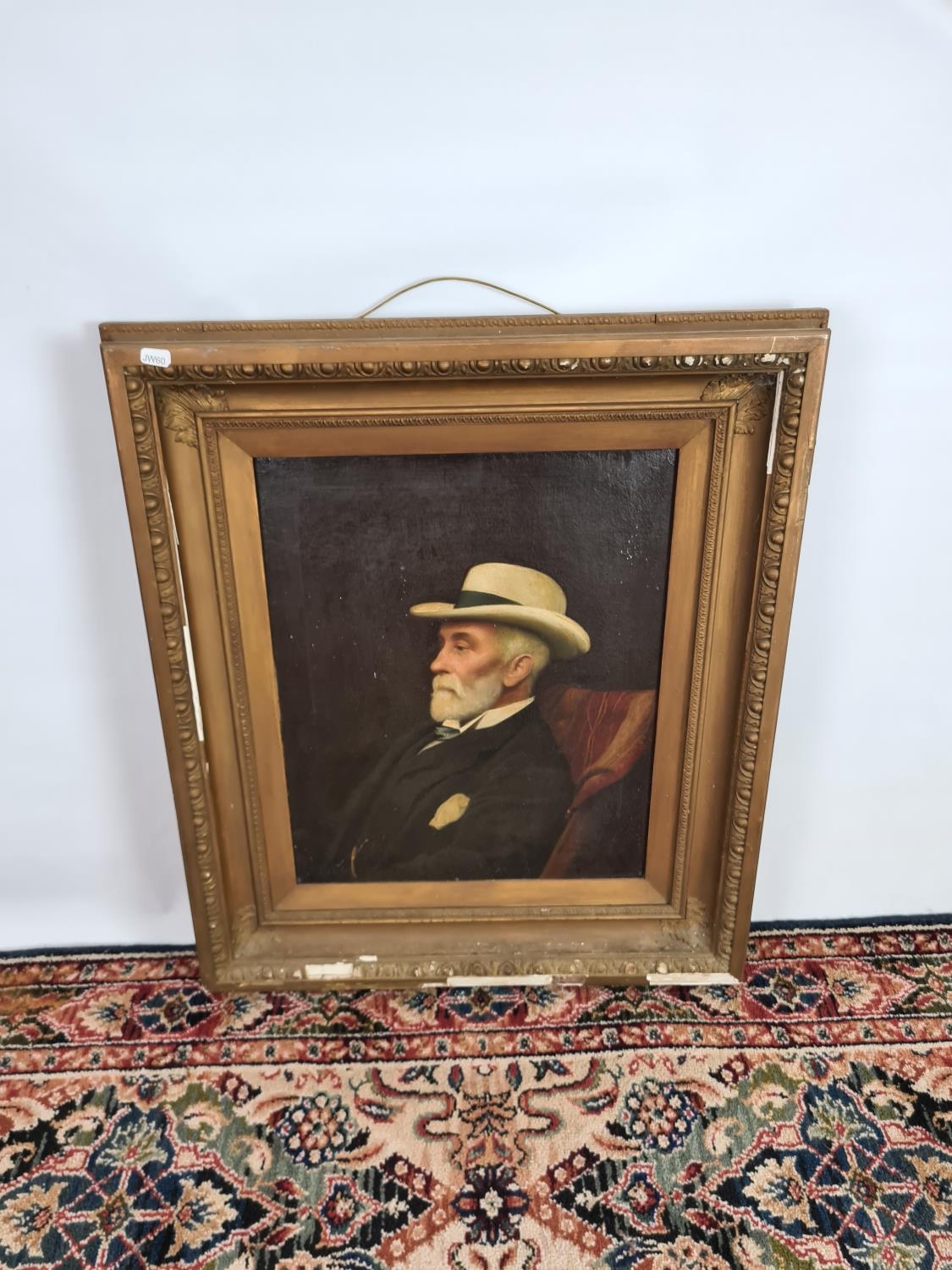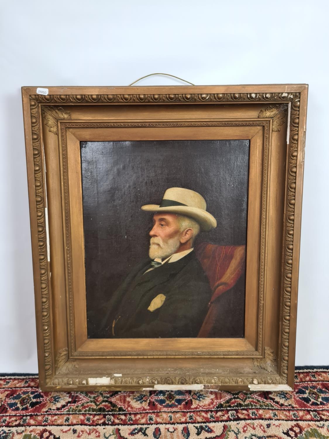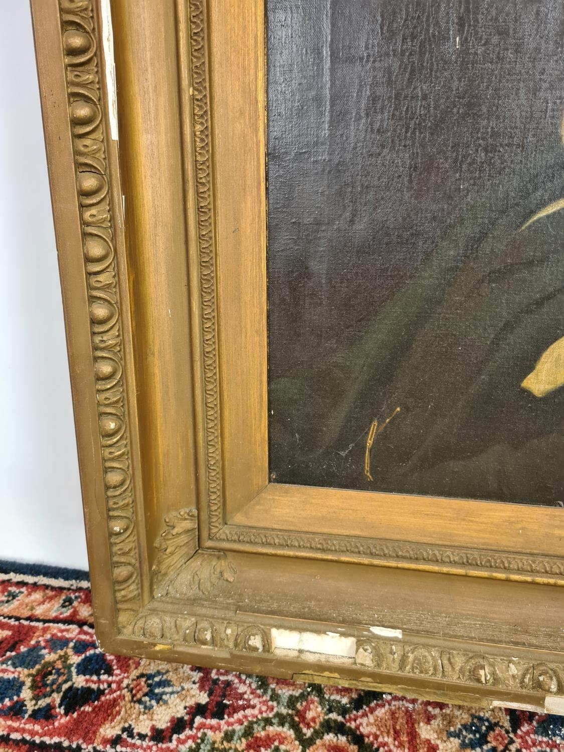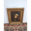 A 19th century gilt framed oil on board portrait of a seated...