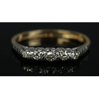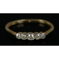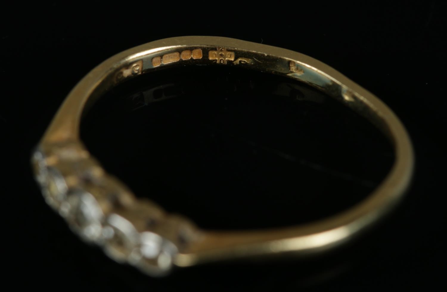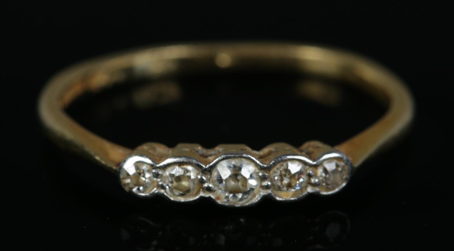 An 18ct gold five diamond stone ring. Gross 1.9g.