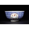 A Chinese Porcelain Blue and White Bowl with Medallion Panels, with Six Character Marks to the Base.