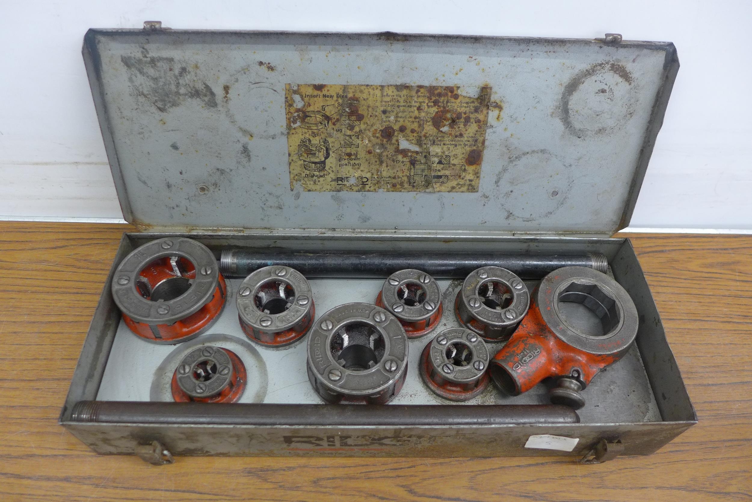 A set of Rigid pipe threading tools in case