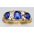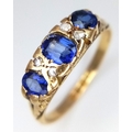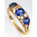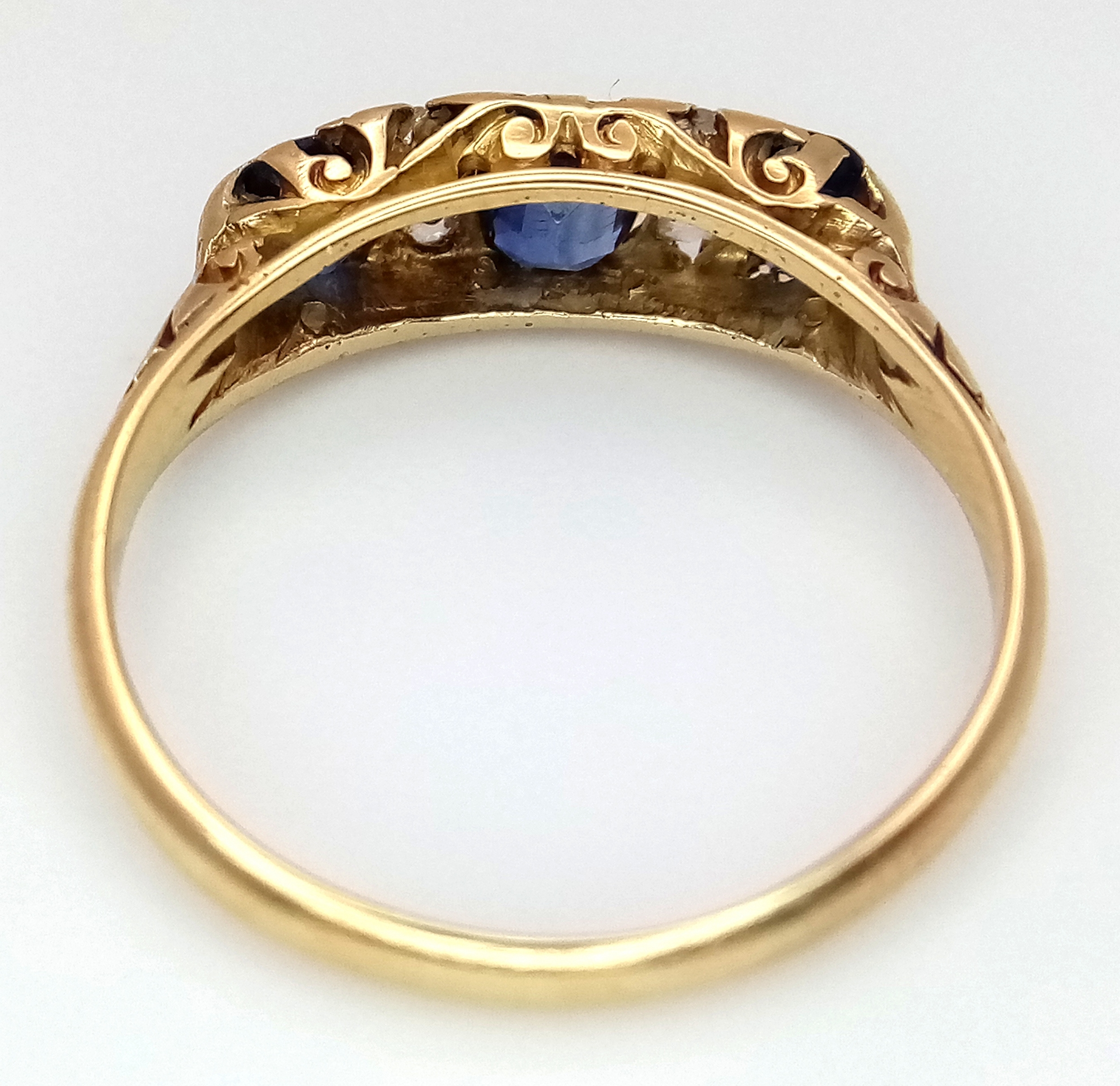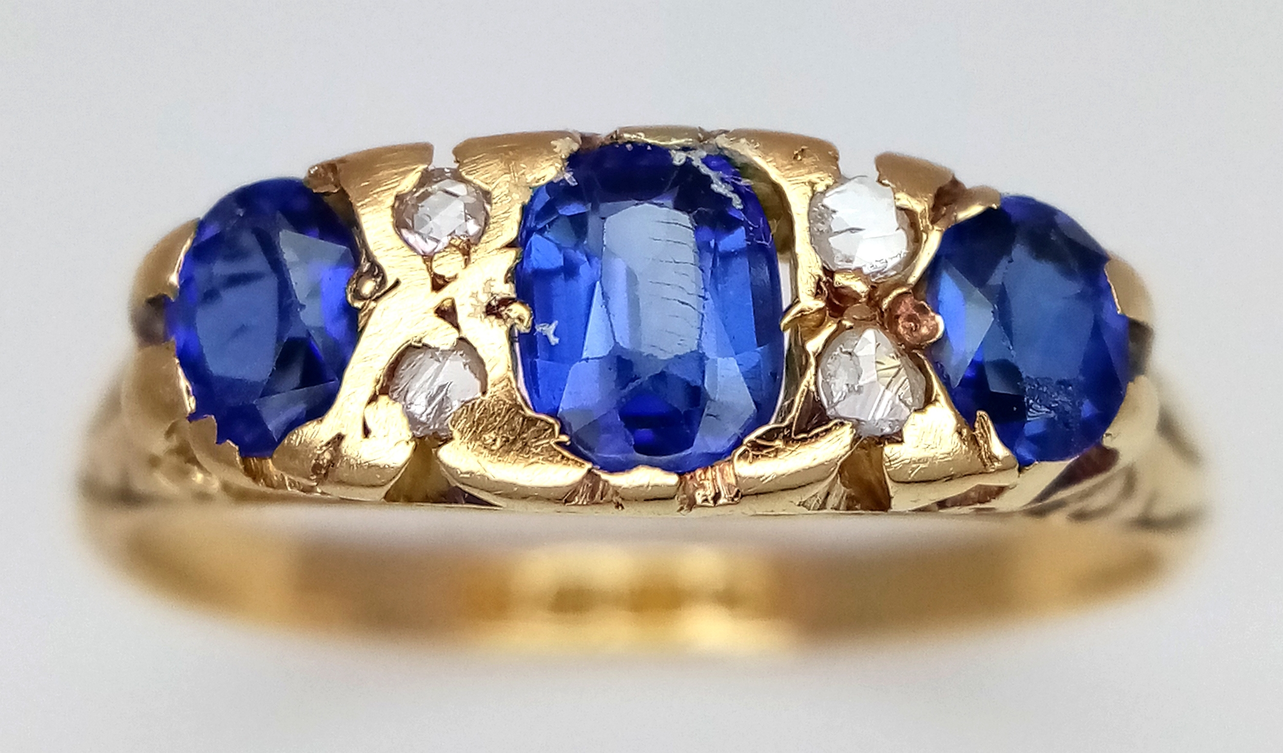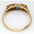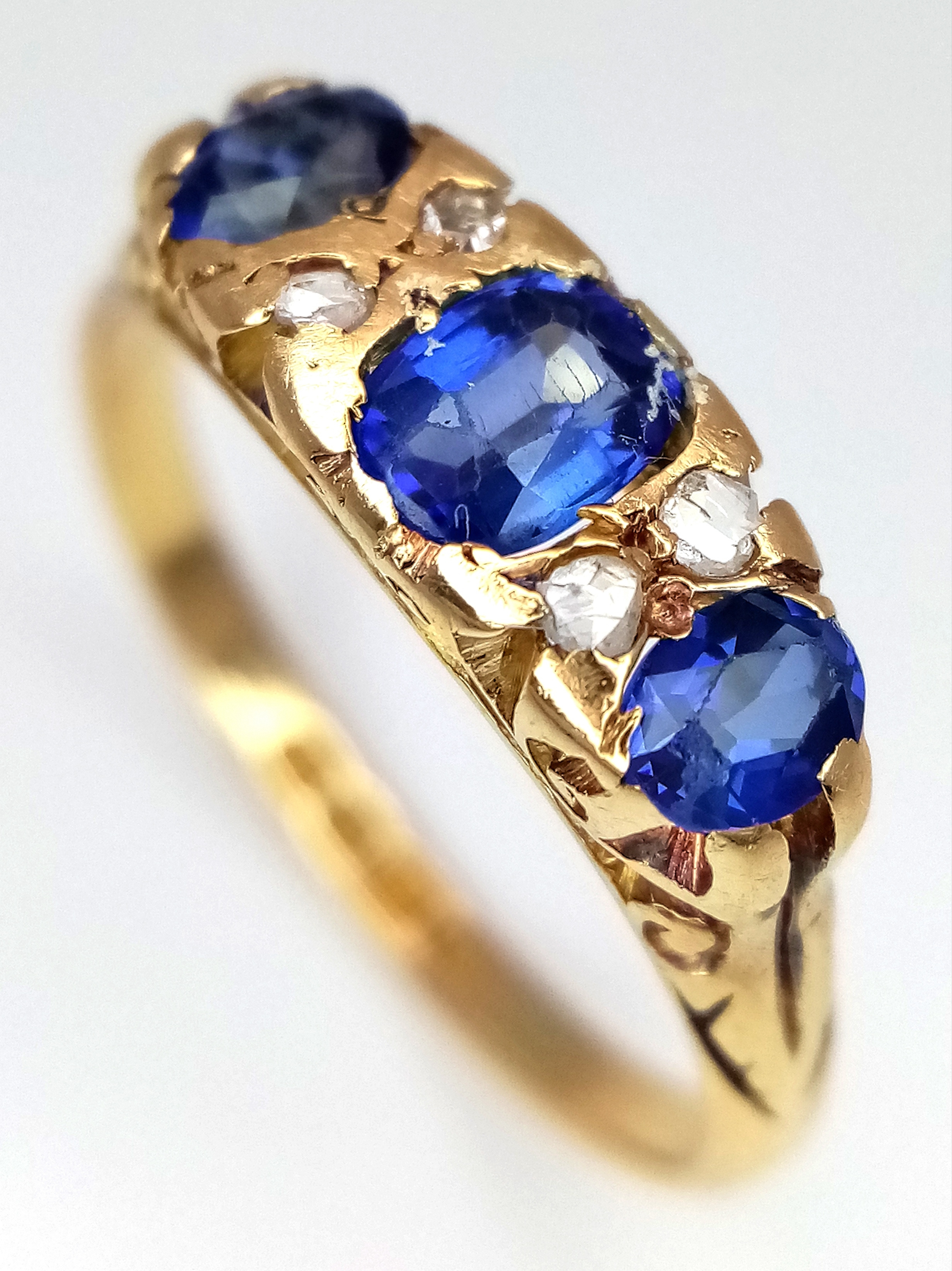 AN 18K YELLOW GOLD ANTIQUE DIAMOND AND BLUE STONE RING. 2.4G. SIZE M. HALLMARKED LONDON 1916. REF-9811.