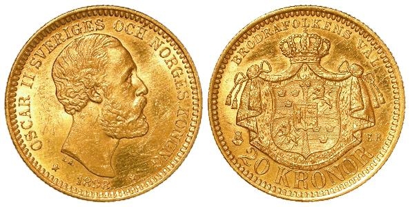 Sweden gold 20 Kronor 1898 EB, KM# 748, AU, some contact marks.