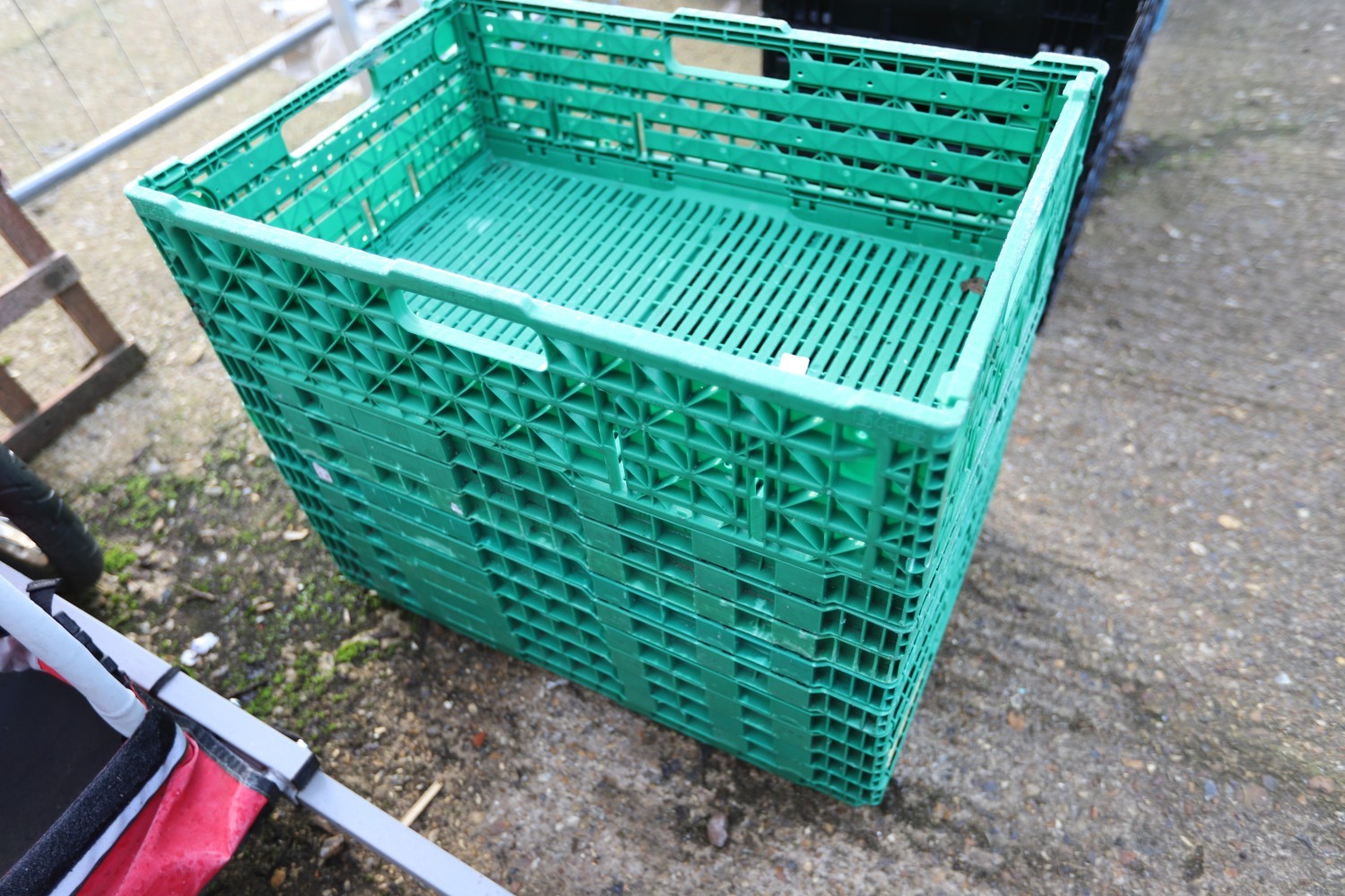 10 green folding crates