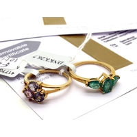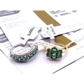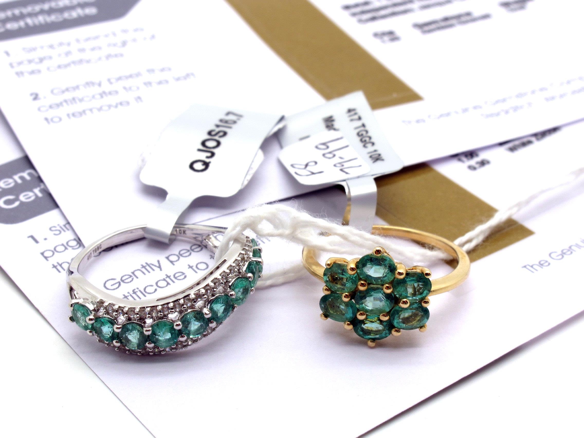 The Genuine Gemstone Company Ltd; A 9ct White Gold Zambian Emerald and White Zircon Ring, claw set throughout, between bifurcated shoulders (finger size O), A 9ct Gold Zambian Emerald cluster ring, of flower head design, claw set, between tapered shoulders (finger size L 1/2) (total weight 4.5 grams) (2).