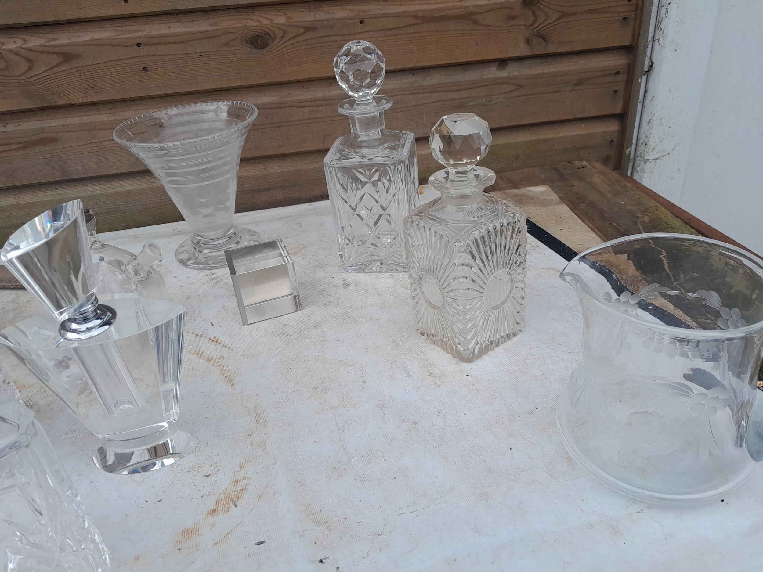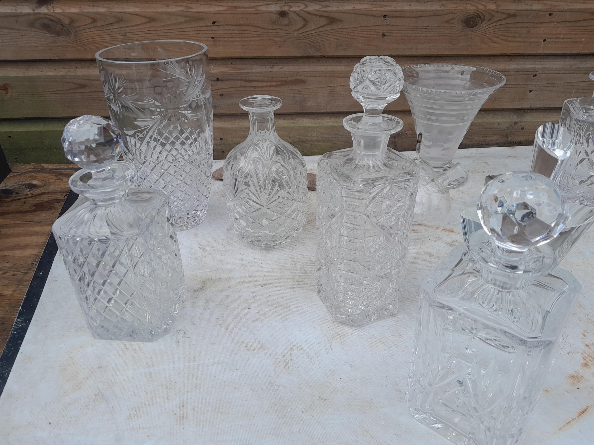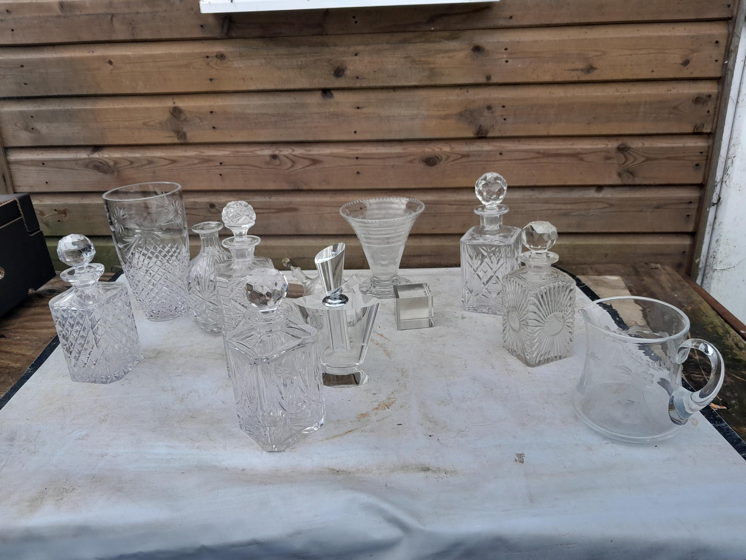 Cut glass and other decanters etc.