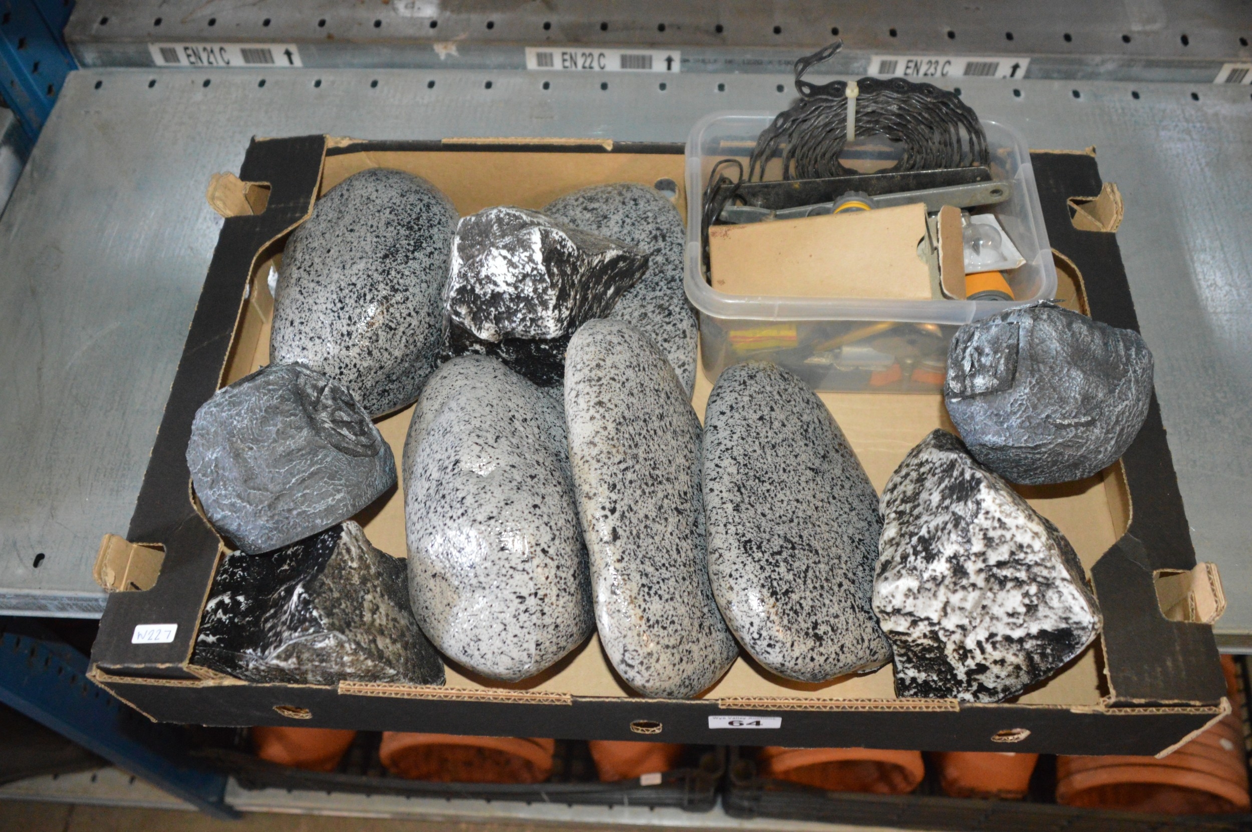 box of water feature plastic rocks