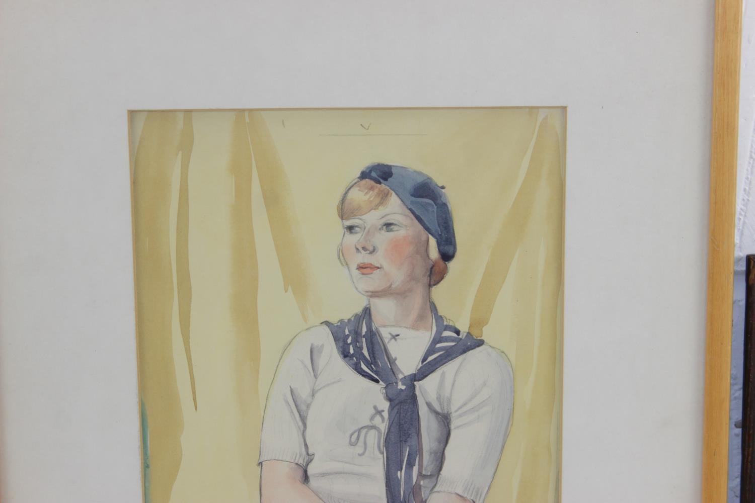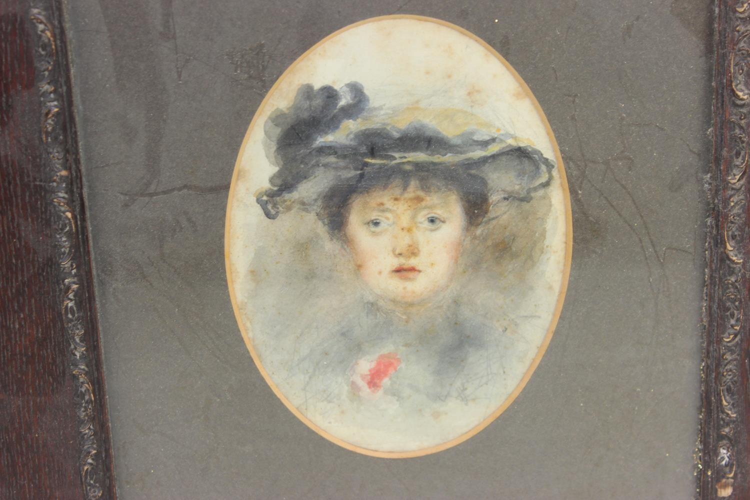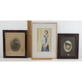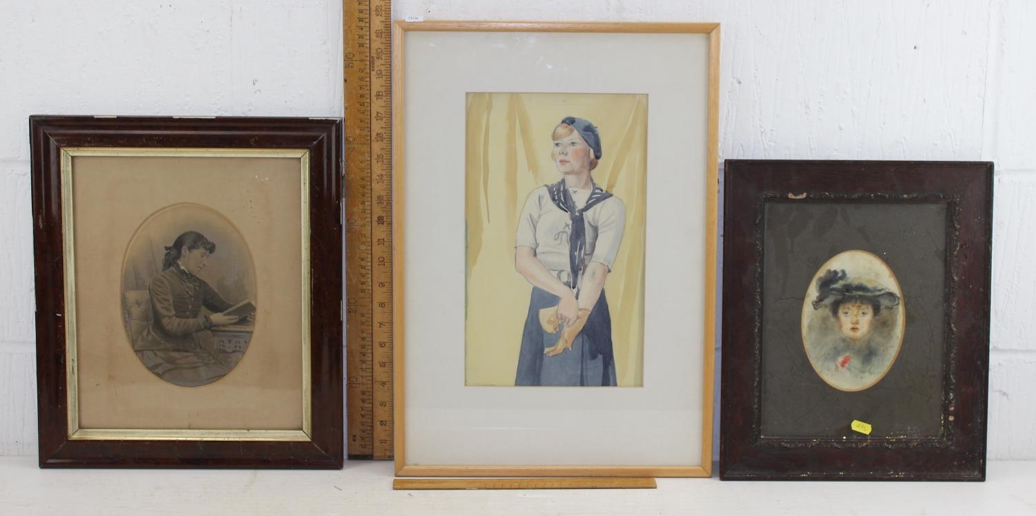 Mixed lady lot to include an Edwardian watercolour, Victorian portrait photo and an Art Deco style watercolour (3)
