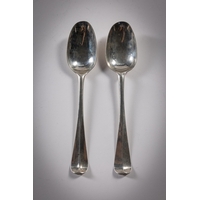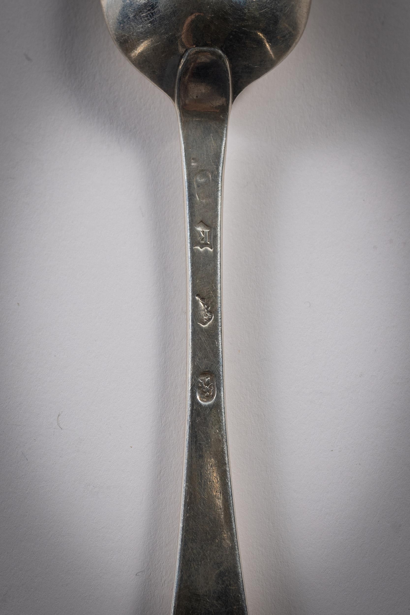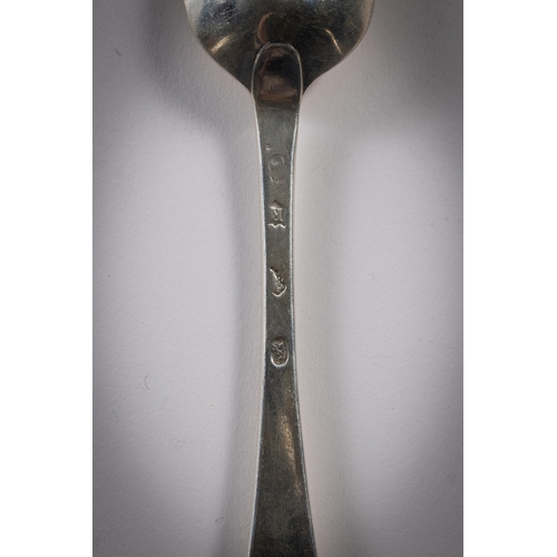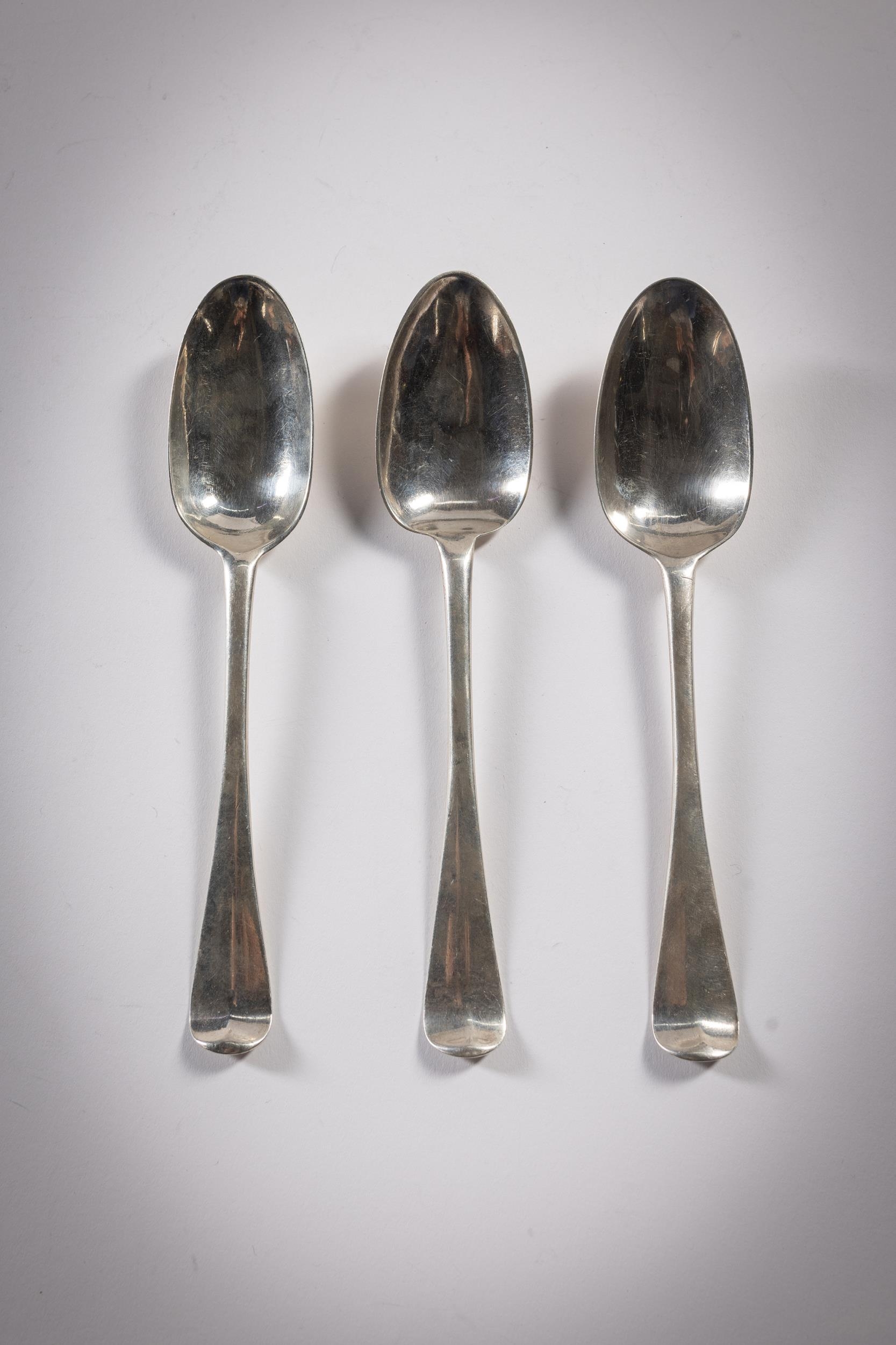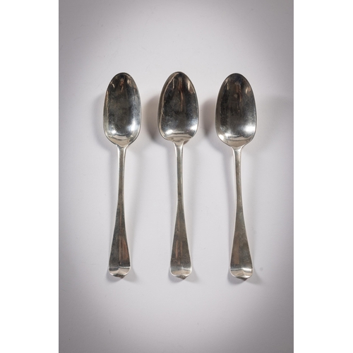 A SET OF IRISH HANOVERIAN SILVER TABLE SPOONS by John Laughlin, Dublin 1758, 22cm (l). 7.13 ozt.