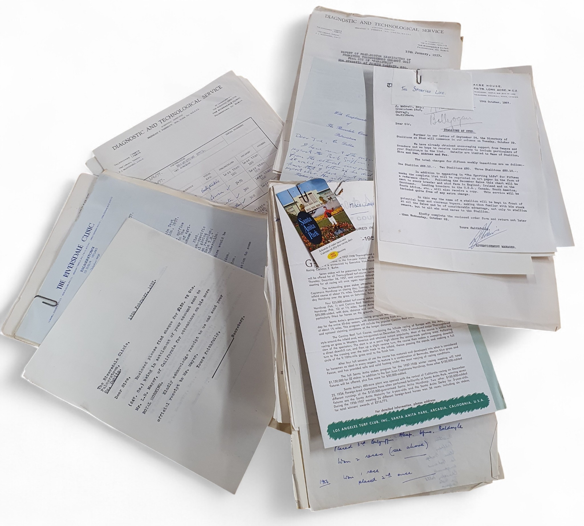 A large quantity of Correspondence relating to Brownstown Stud.