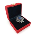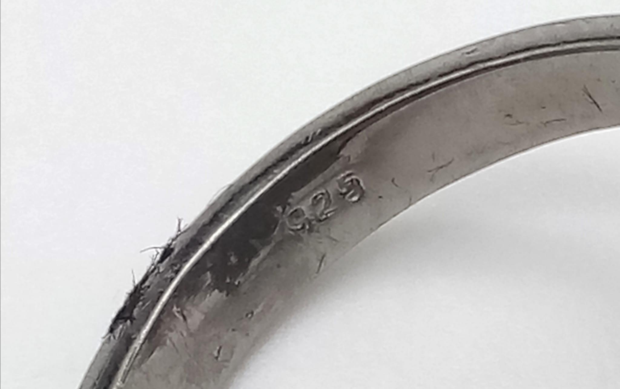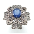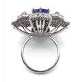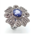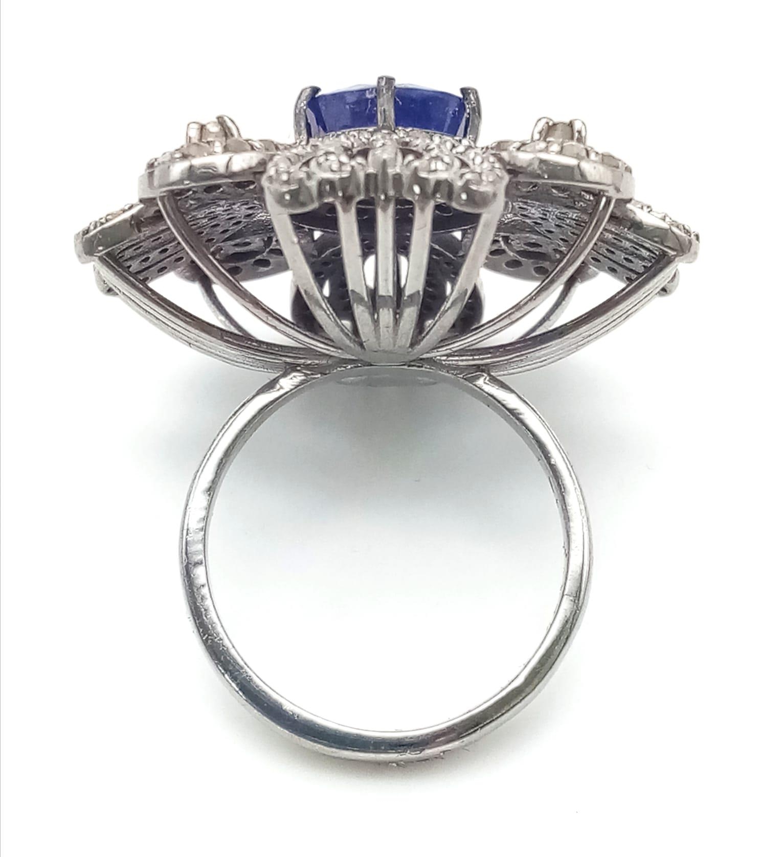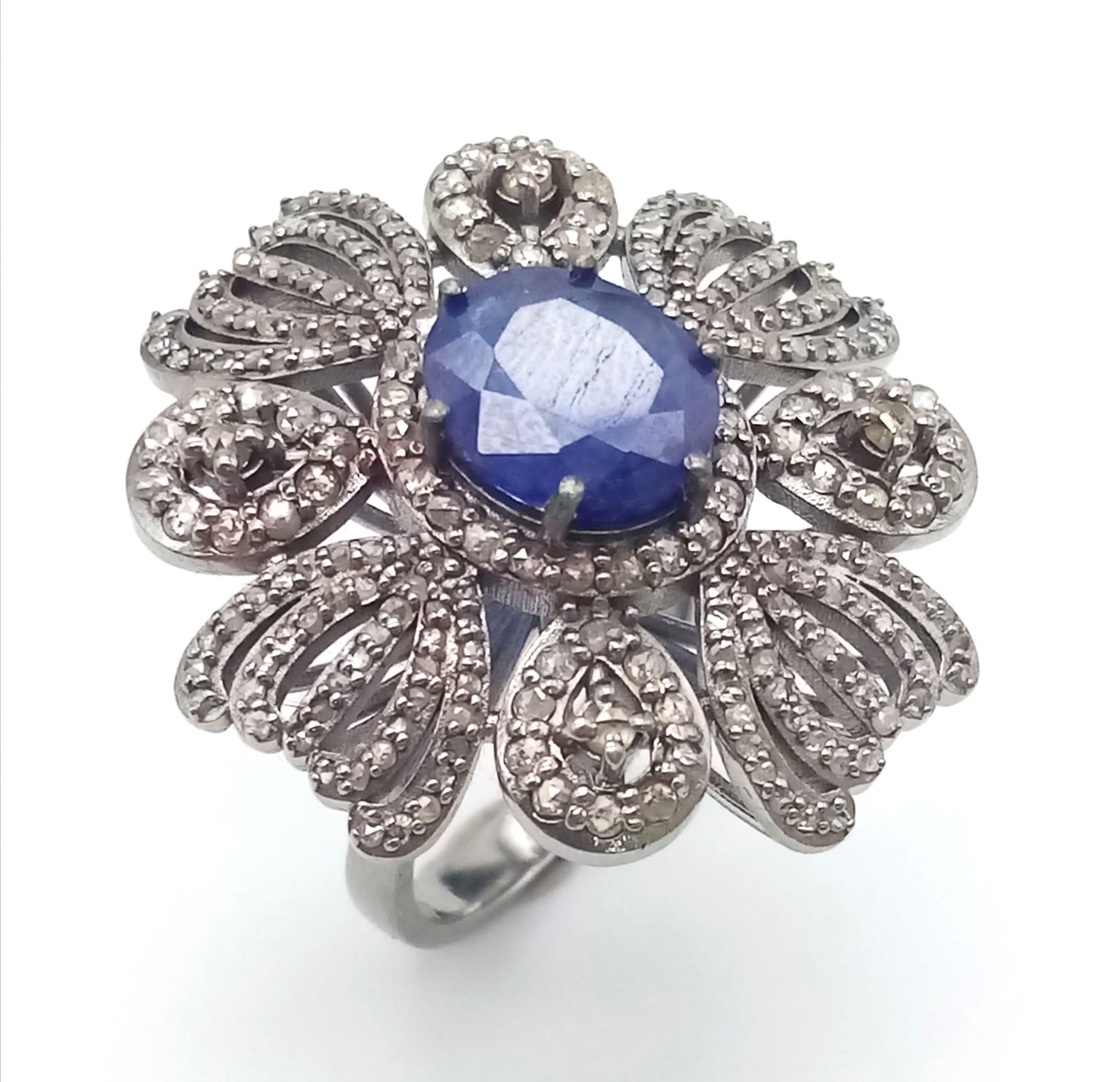 A 10.75ct Blue Sapphire Gemstone Ring with 1.65ct Diamond Accents. Set in 925 Silver. Size N. 10.78g total weight. Comes with a presentation case and certificate.