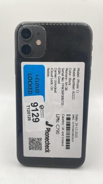 APPLE IPHONE 11 / A2211 / 64GB / IMEI: 357959803865654 / I-CLOUD LOCKED