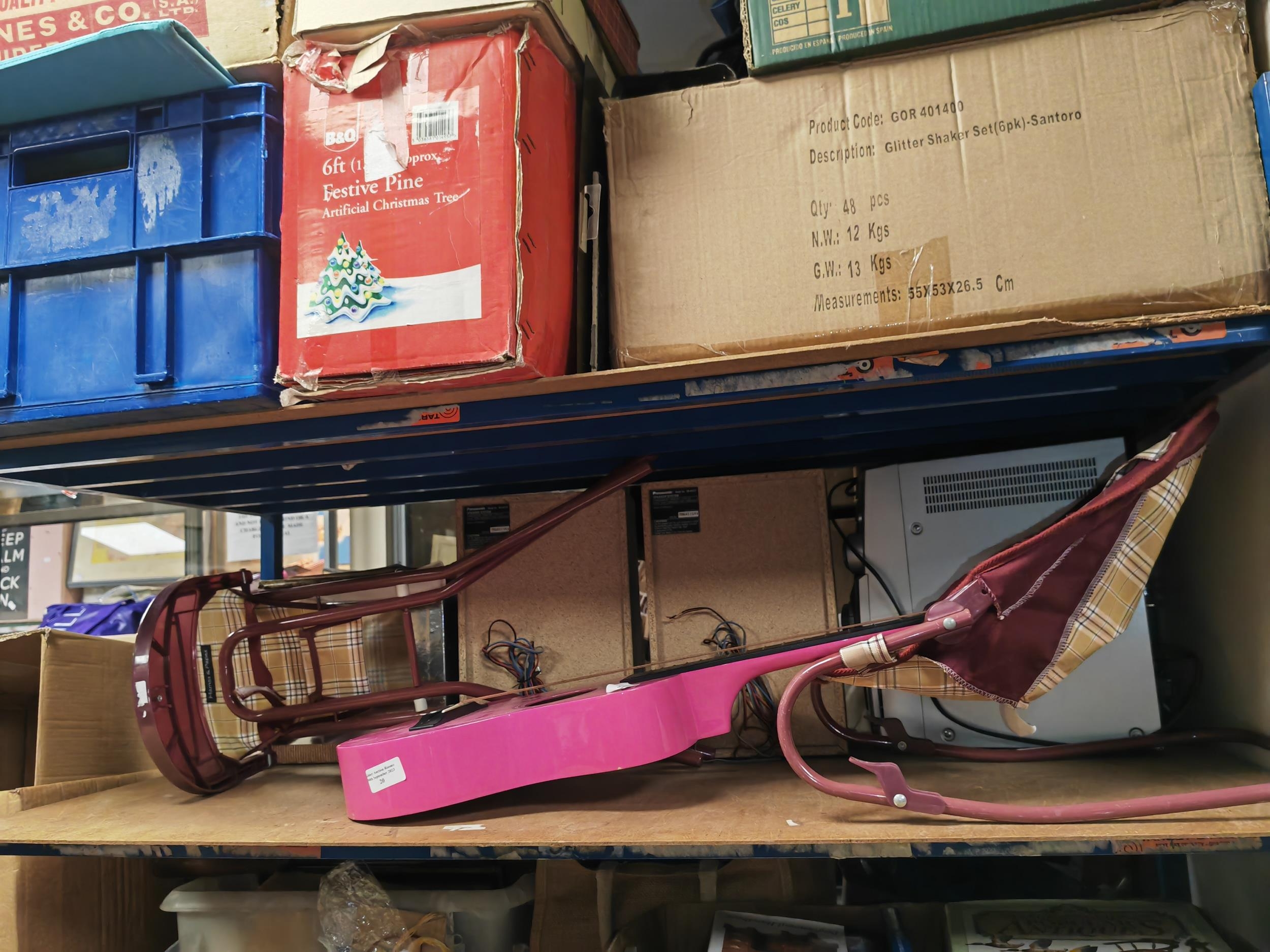 Mama And Papas Dolls Highchair And Bouncer + Pink Childs Guitar Missing A Few Strings