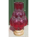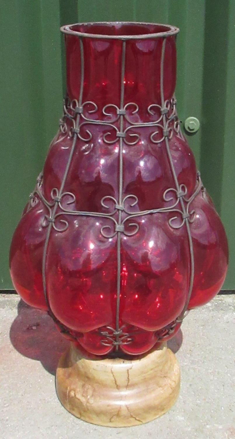 Jon Culshaw Collection - 1960s red glass inverted baluster vase with scrolled metal mount on stepped circular base