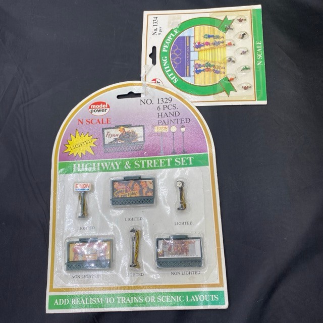 Model Power N gauge Highway & Street set together with Sitting People (carded) - Very Good & cards VG (2) 50g