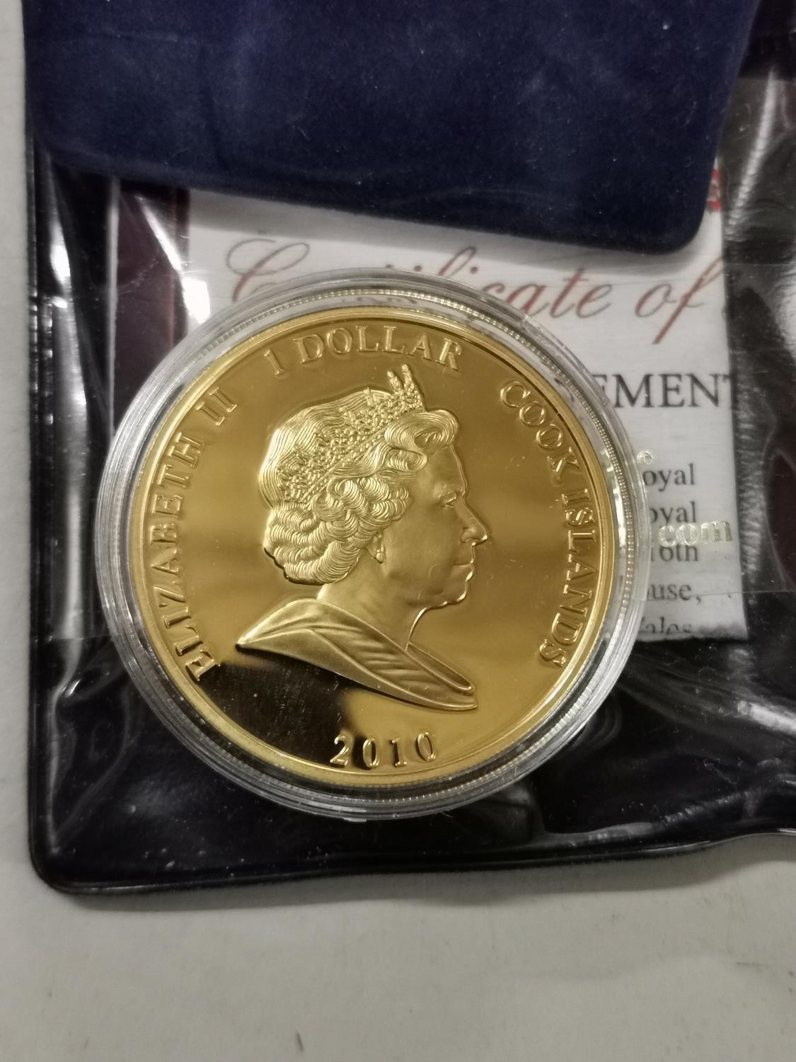Westminster Collection William & Catherine engagement gold plated 2010 Cook Island $1 coin in pouch with COA