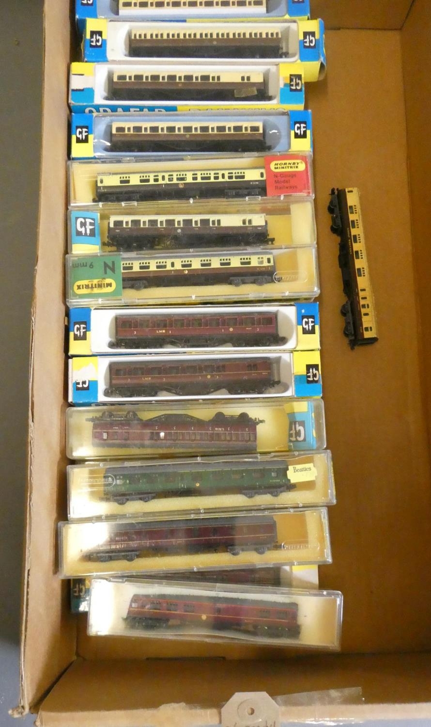 Twenty six N-gauge BR passenger rolling stock by Graham Farish and others, most items boxed, good to excellent