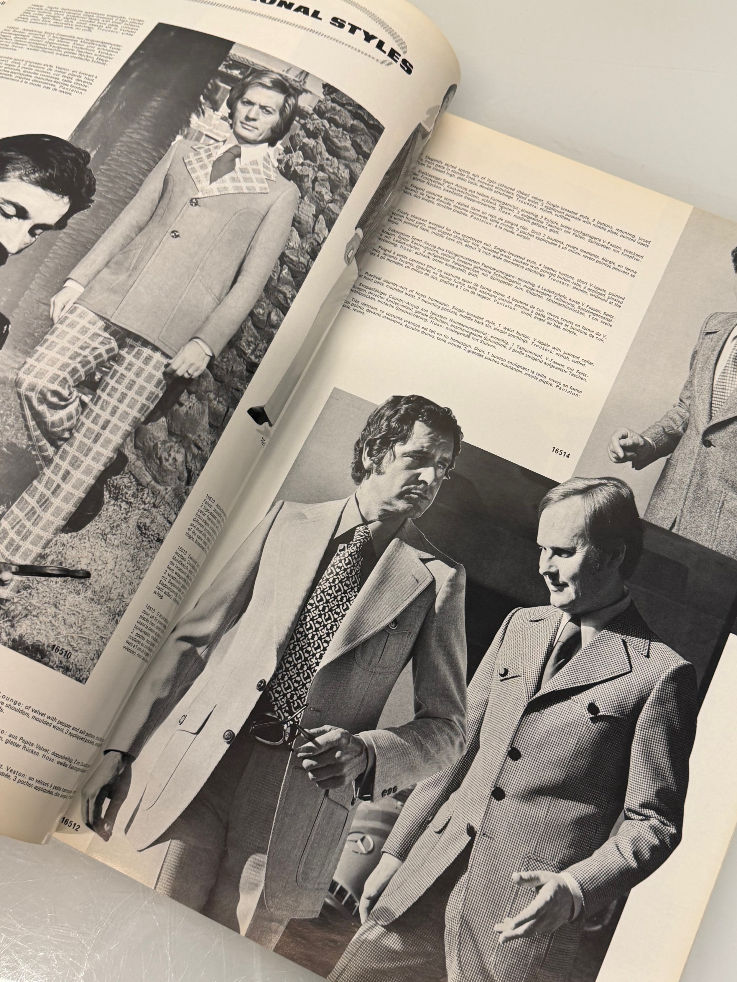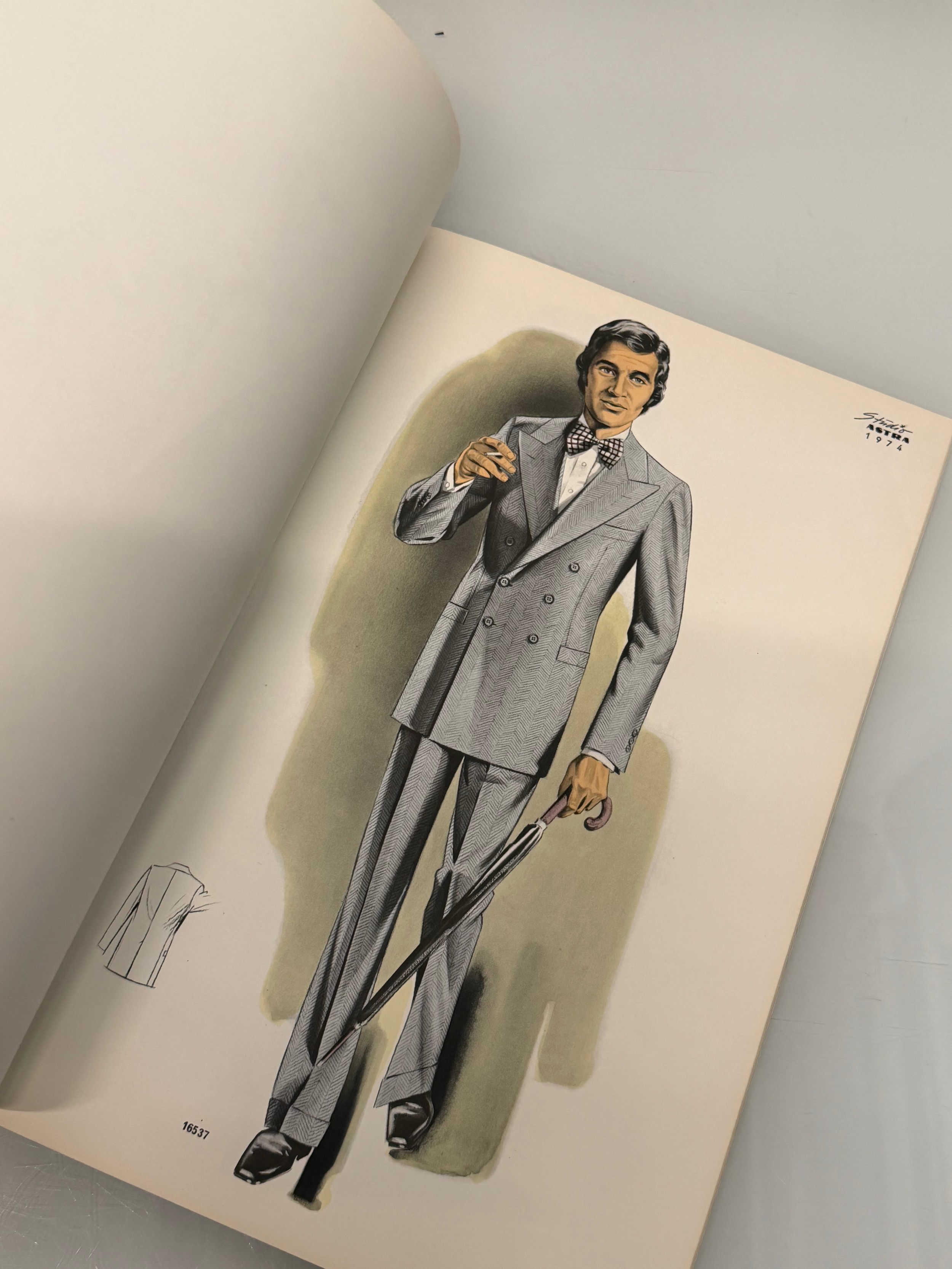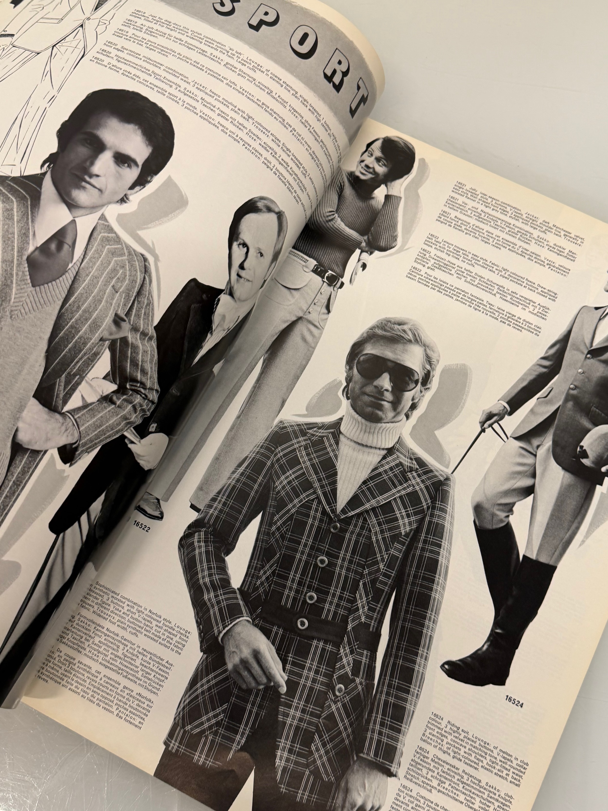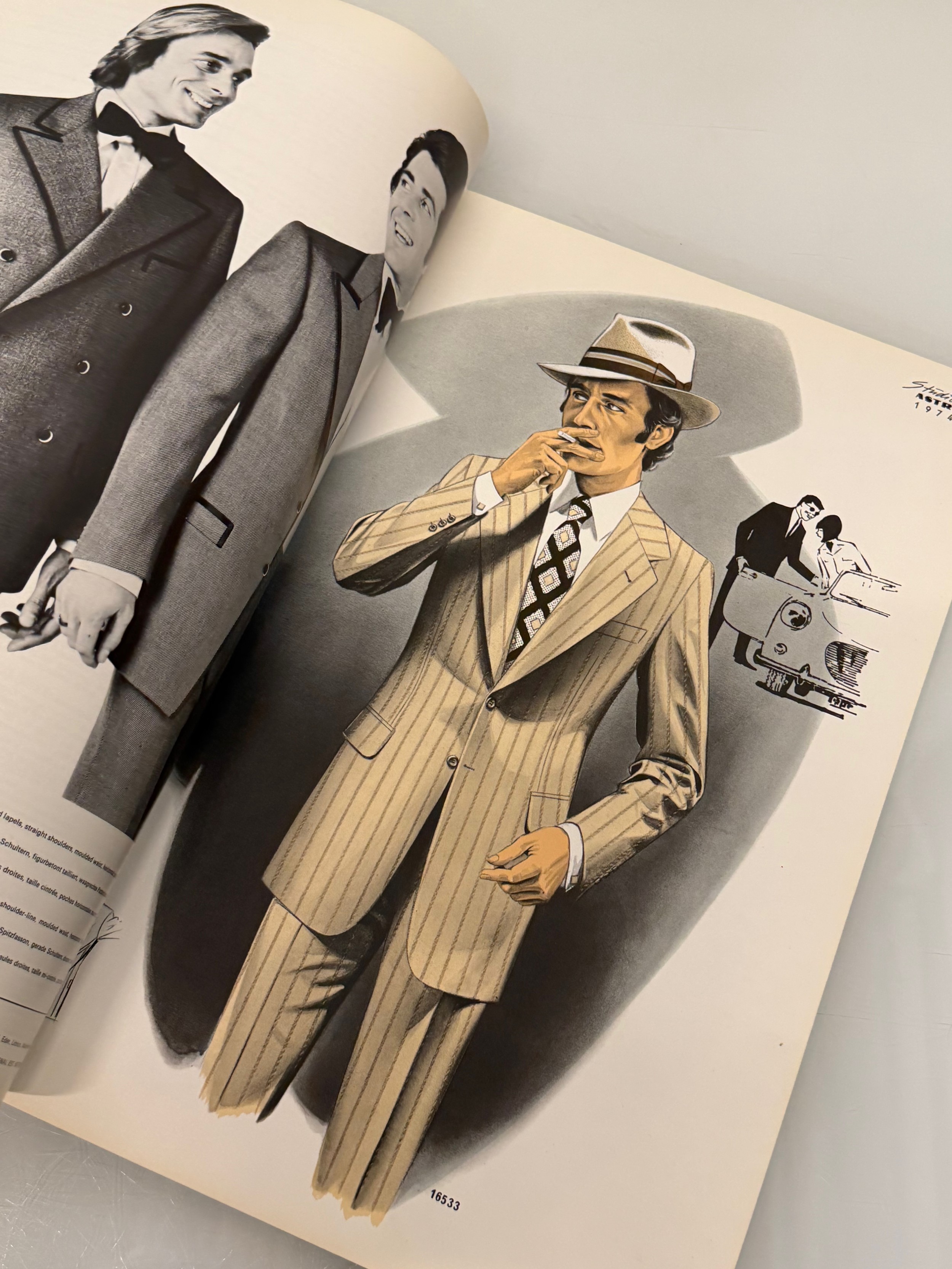 Vintage Fashions, a manufactuers catalogue for 1974 gents clothing, with design illustrations inside.