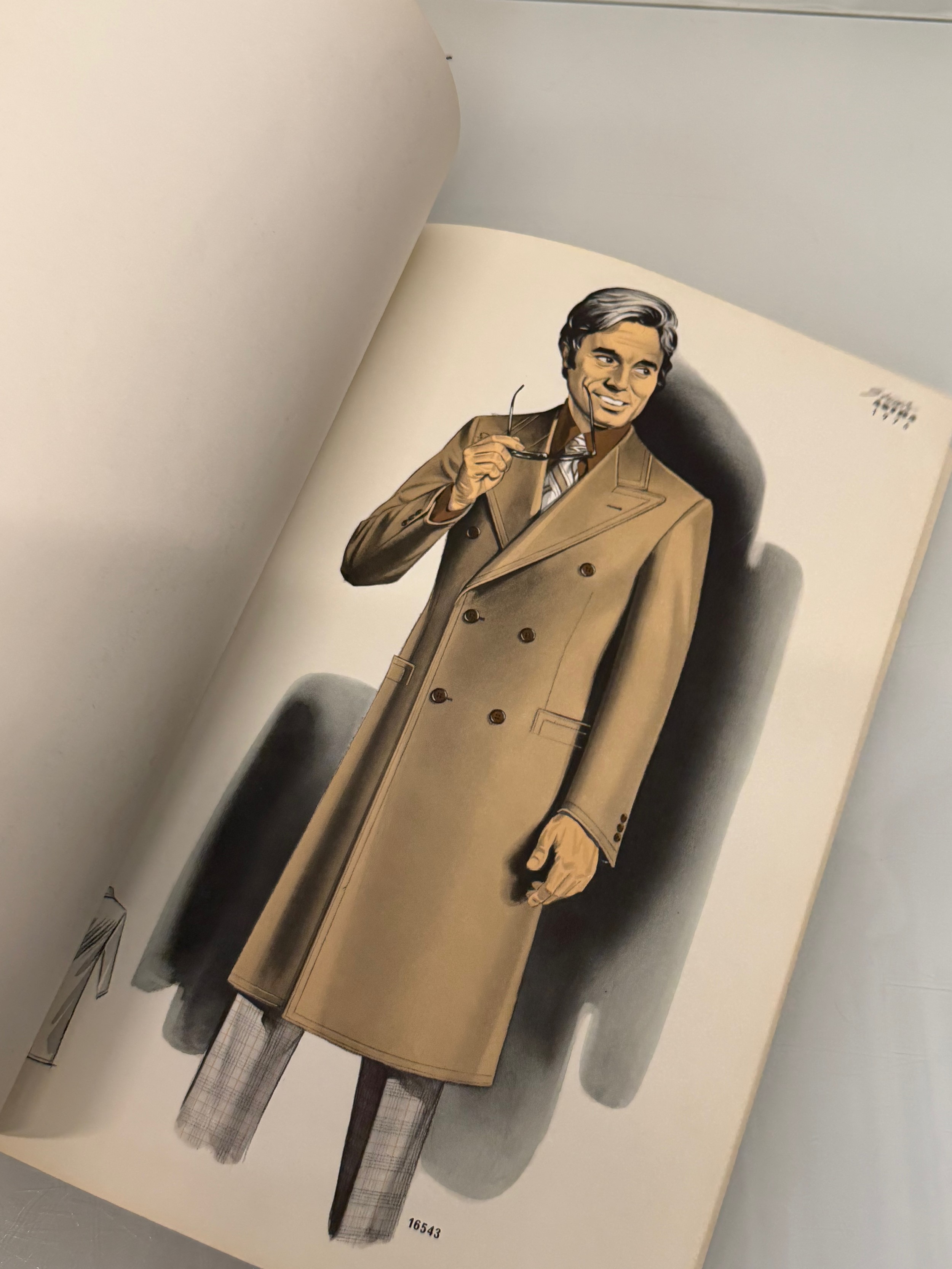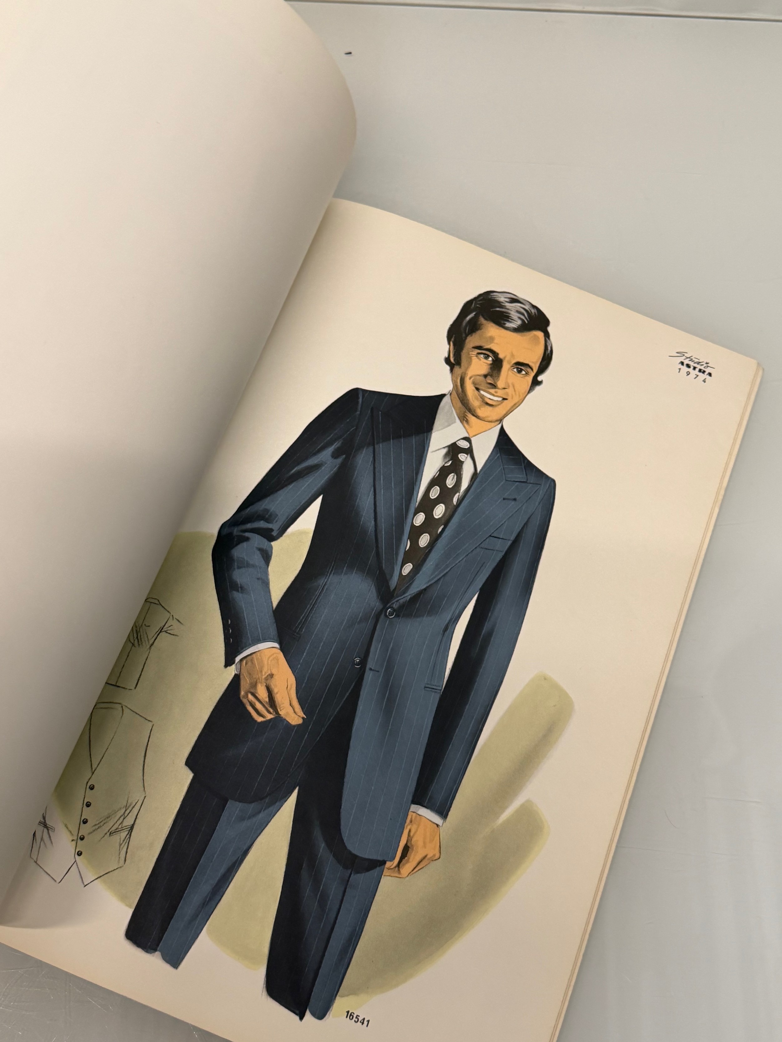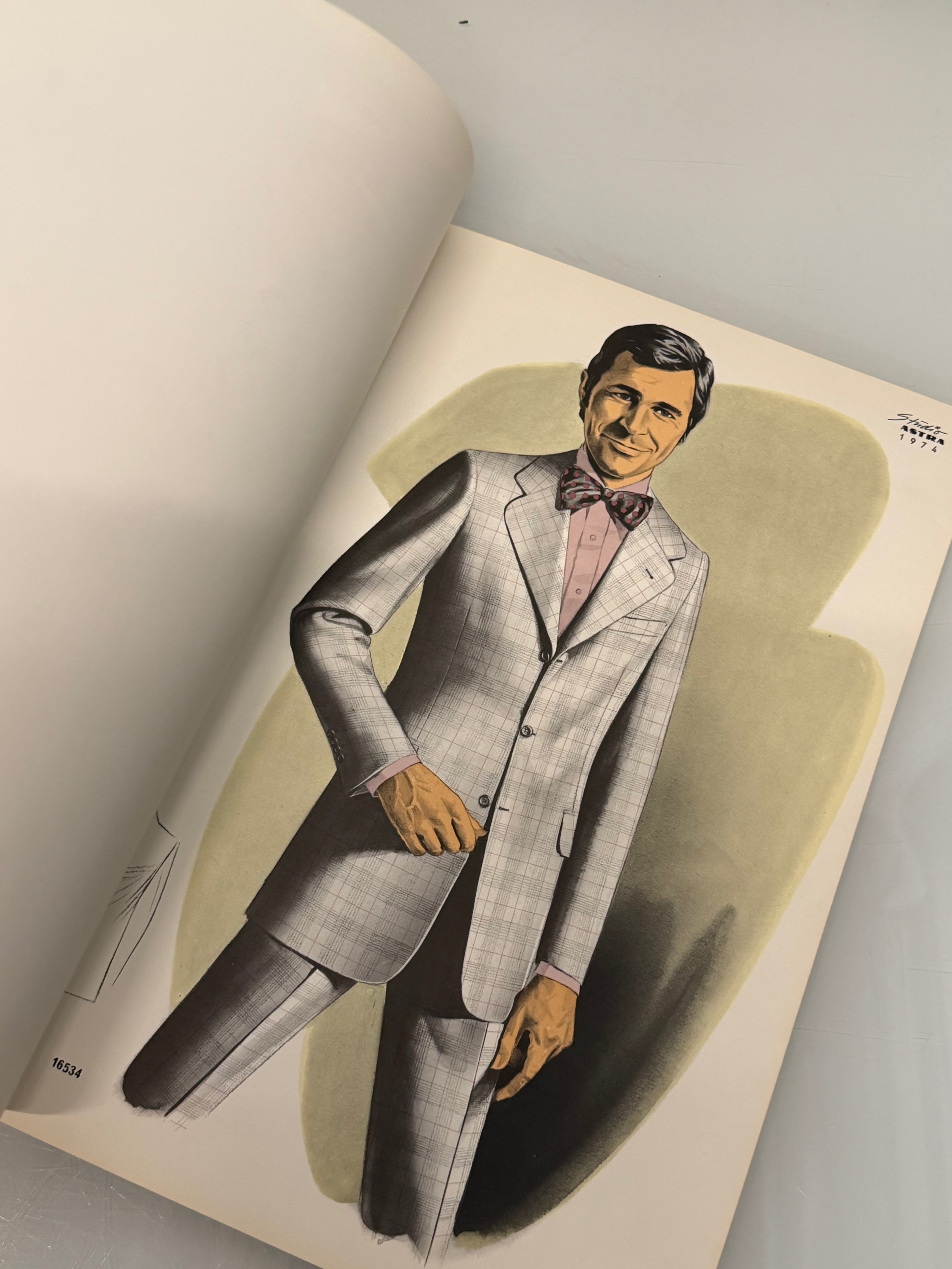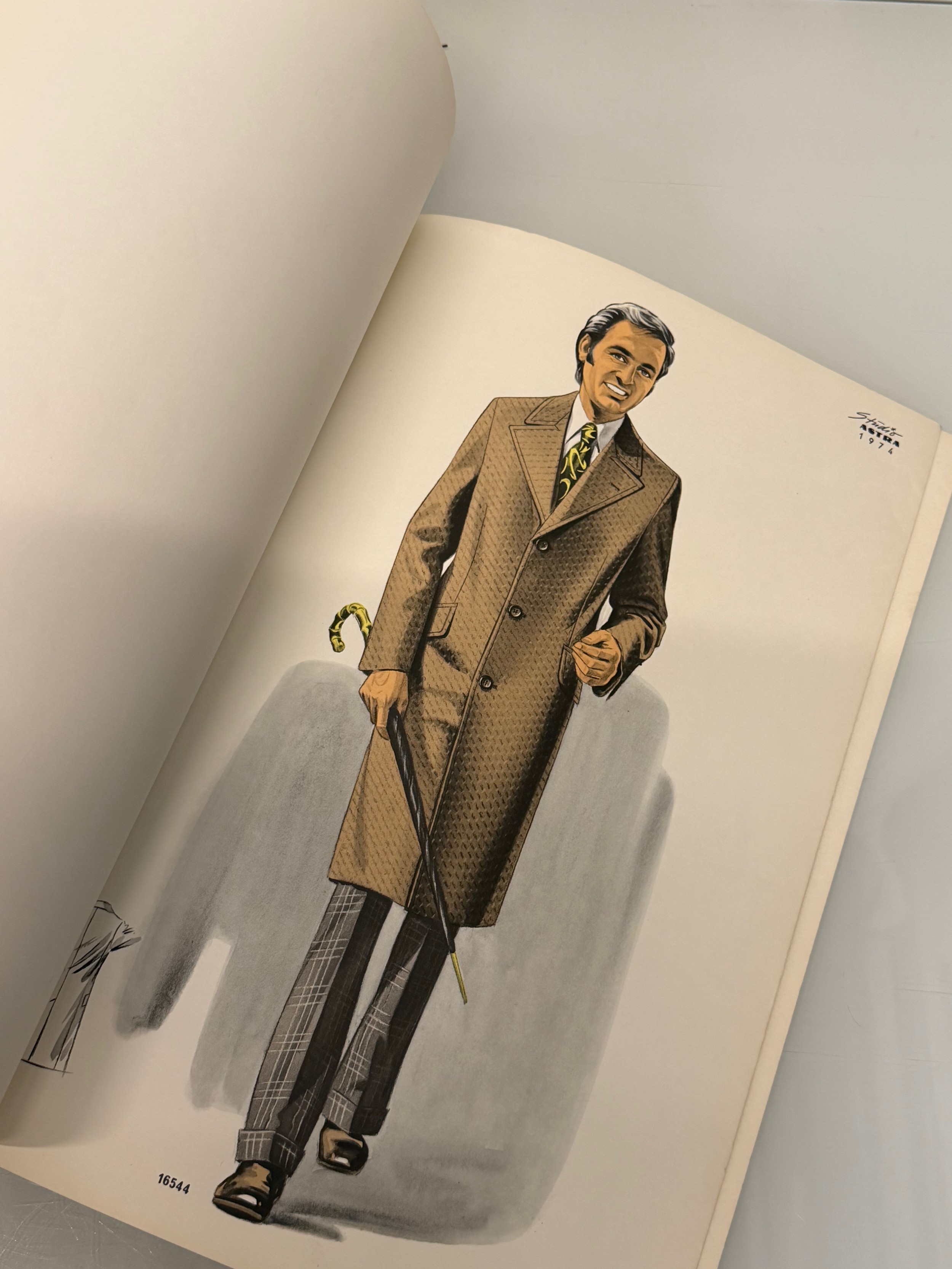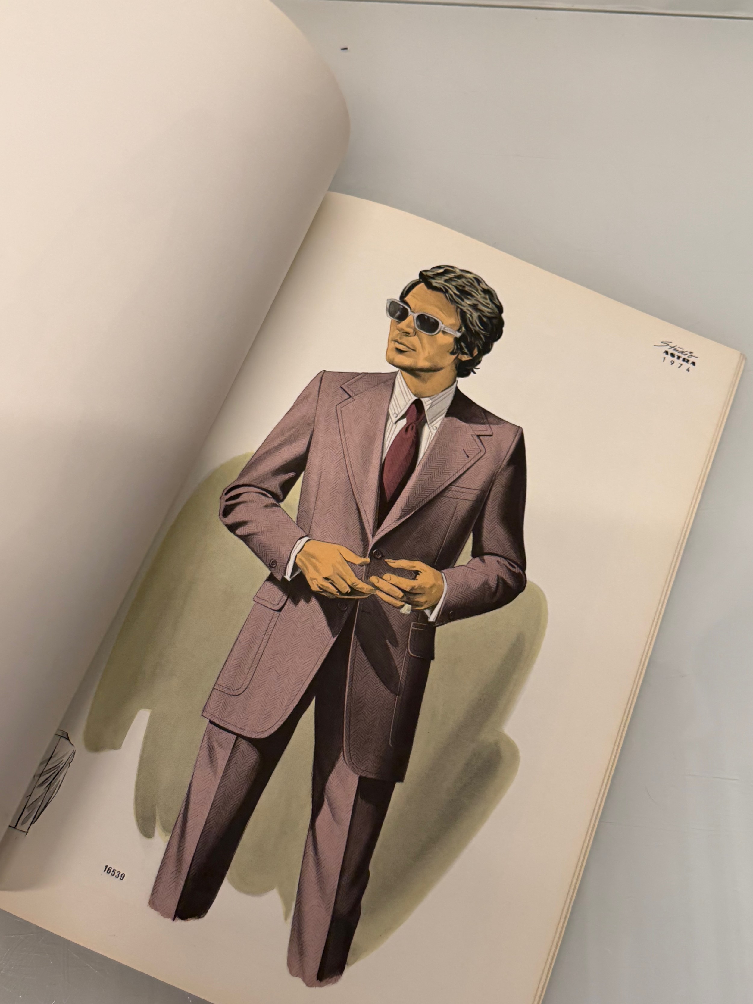 Vintage Fashions, a manufactuers catalogue for 1974 gents clothing, with design illustrations inside.