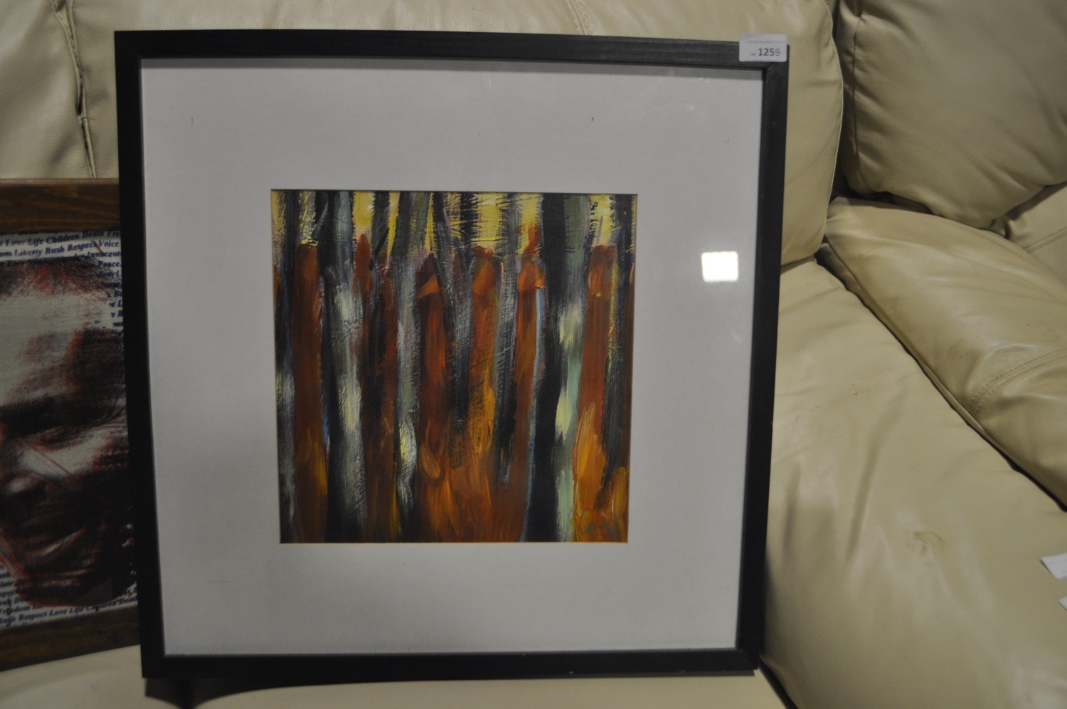 A FRAMED ORIGINAL ABSTRACT ACRYLIC PAINTING SIGNED BY THE ARTIST TO THE LOWER RIGHT. SURNAME APPEARS TO BE WOODS