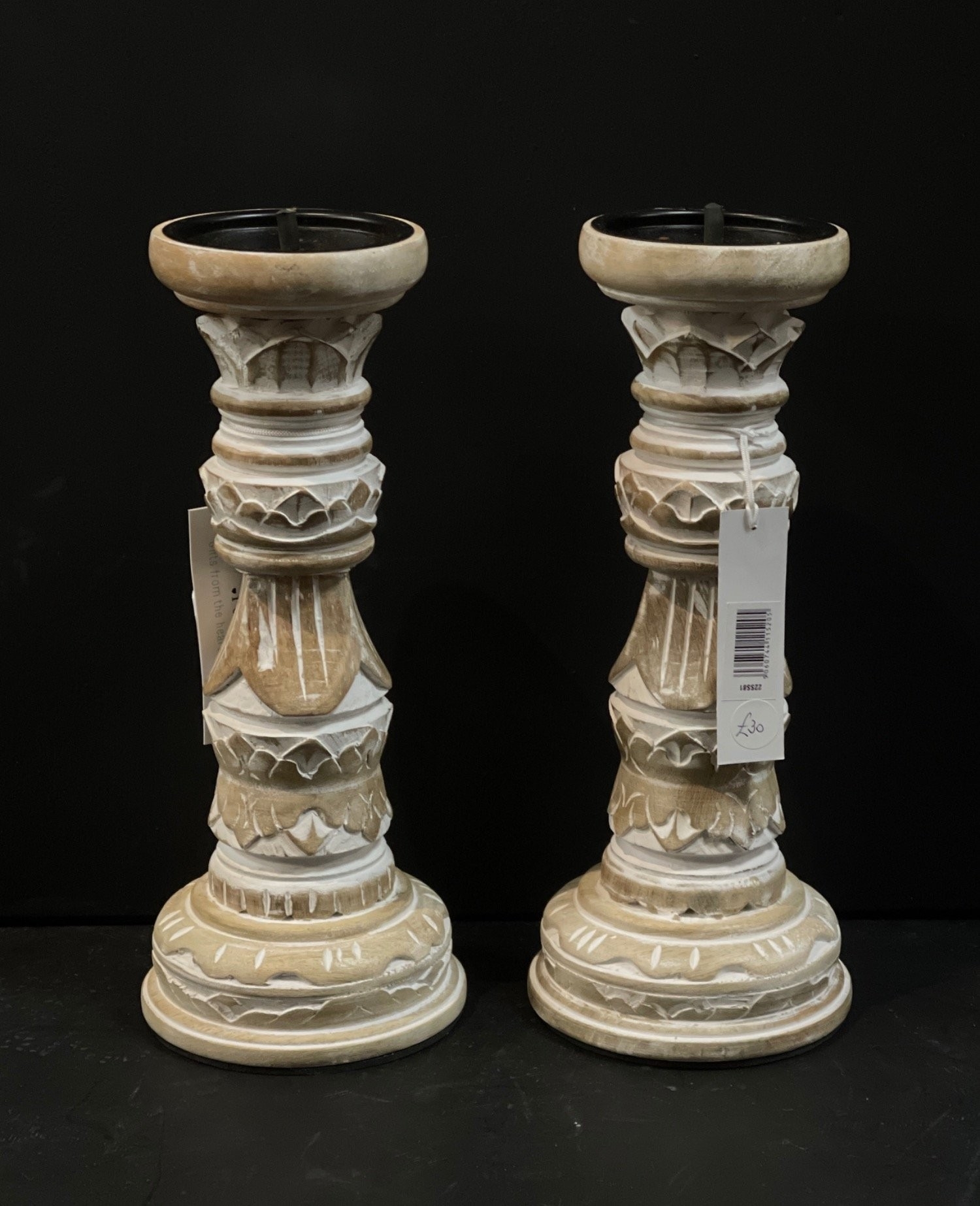 XMAS GIFTING IDEAS! - A pair of tall DISTRESSED chalk painted candle holders. Dimension each standing 30cm approx - rrp £60
