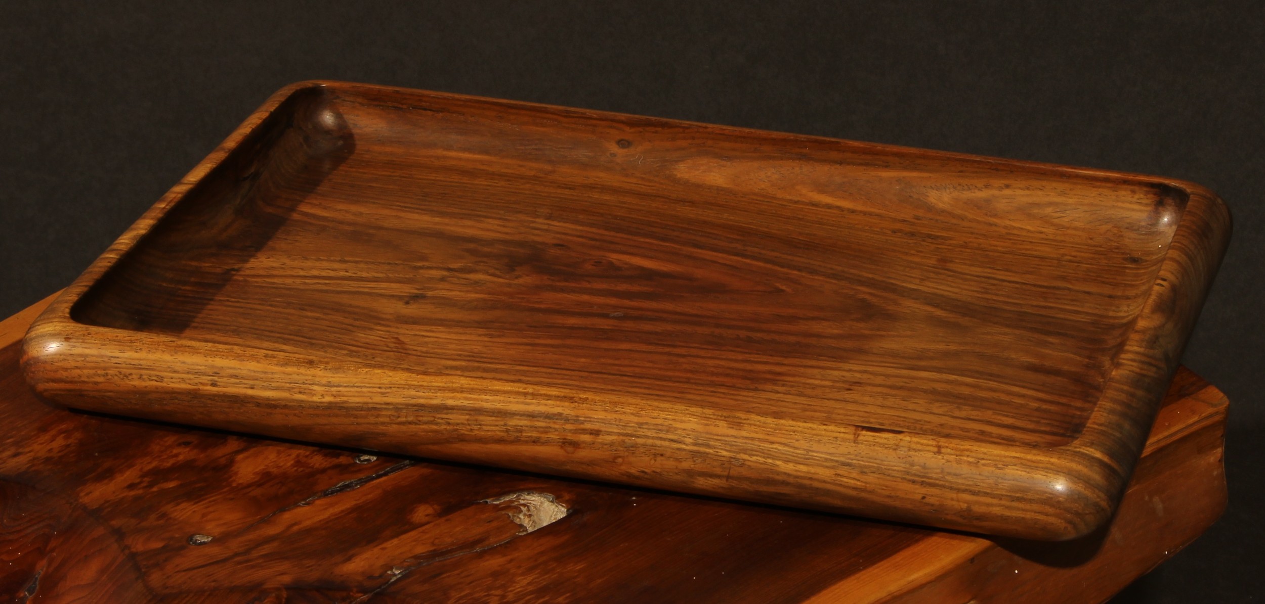A Chinese huanghuali rounded rectangular tray, 35.5cm wide