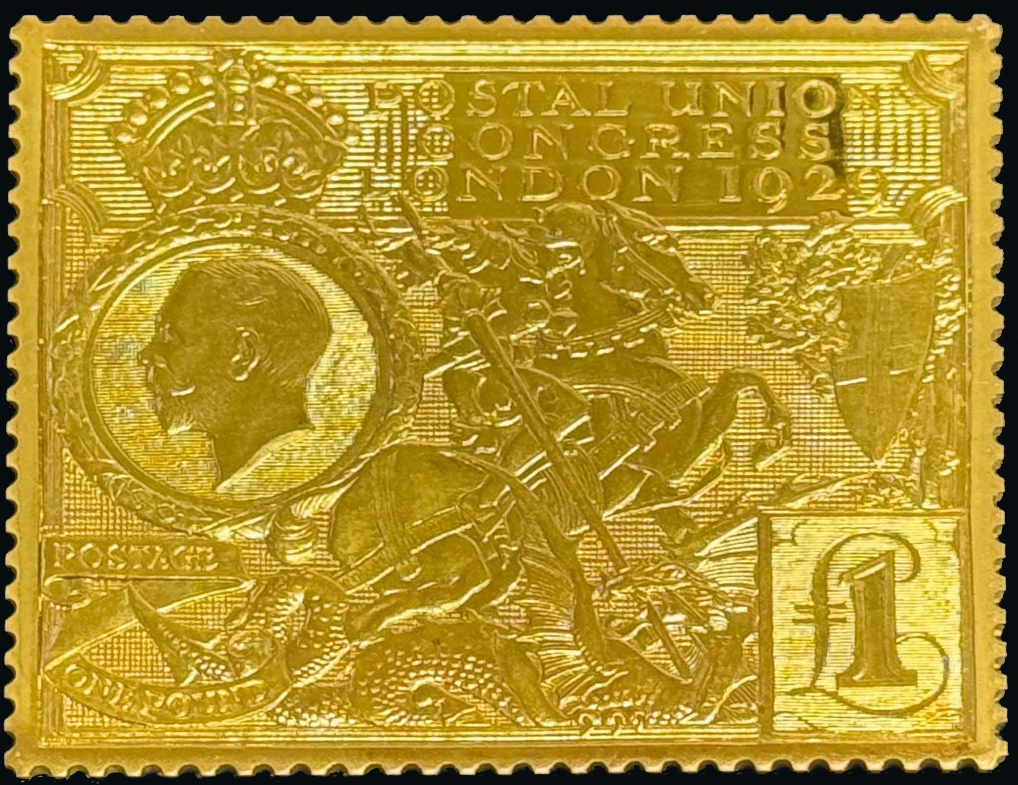 1974 22k Gold replica of the 1929 PUC £1, London 1974 hallmarks, struck at the Royal Mint on behalf of Hallmark Replicas, number 1940 of an edition of 3,000, in a box, weight 36.7g. Photo above.