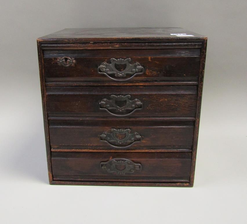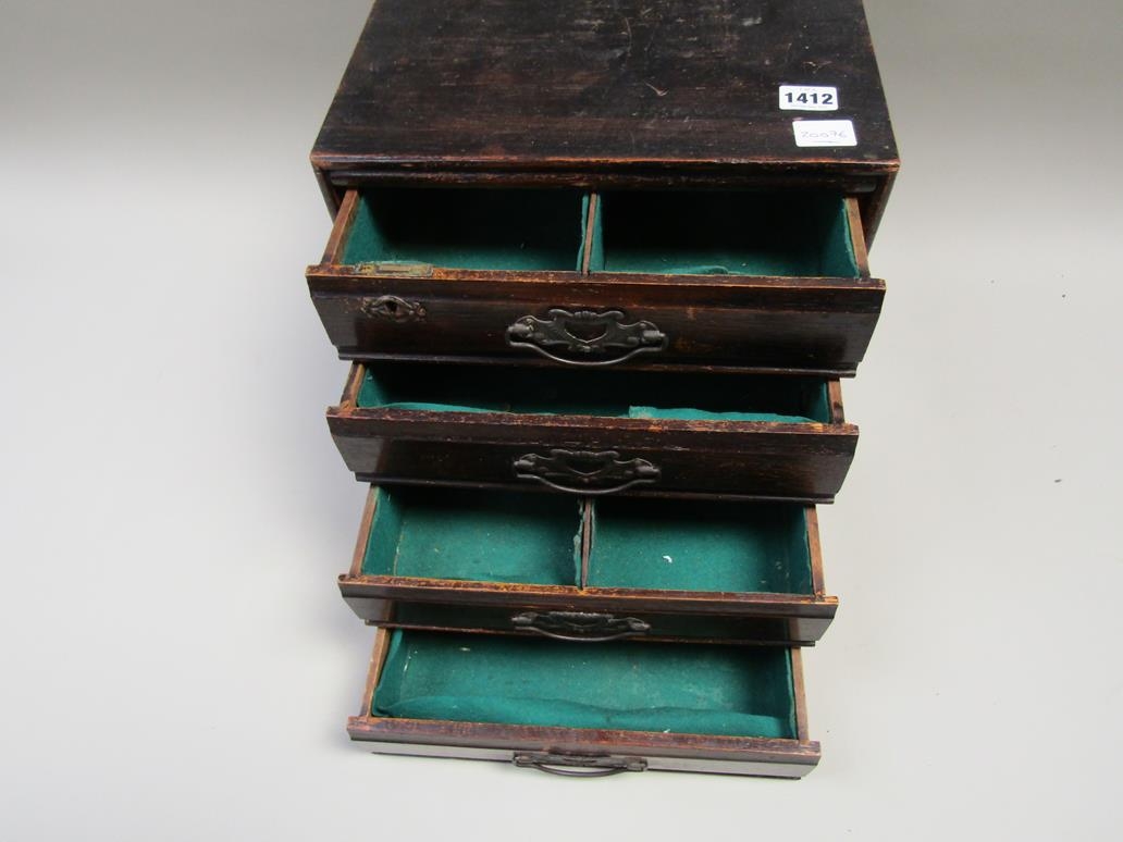 LATE 19C TABLE TOP FOUR DRAWER COLLECTORS CABINET, 32CM H