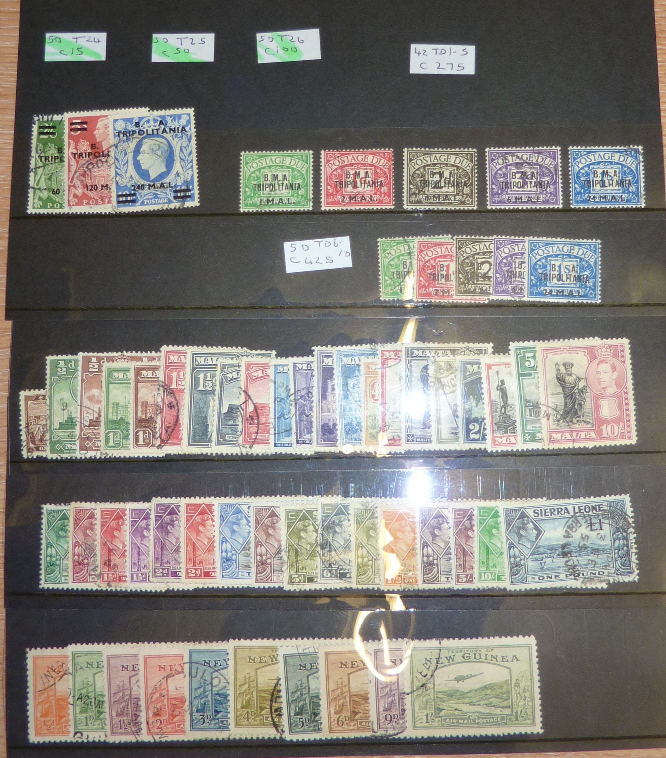 British Commonwealth valuable lot of FINE USED on stockcards (35+) stc £3900+ several 100 all diff with KGVI sets & better values. Noting 1949 Wedding sets, various 1938 defin sets inc Br Honduras, Jamaica to £1, British PO in Italian Cols with scarce postage dues FU & much more. Good group.