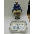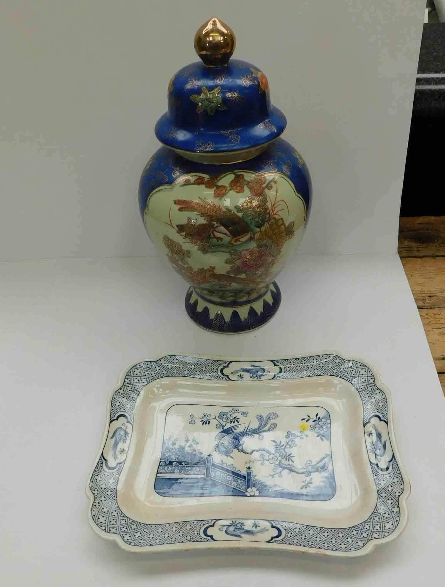 Oriental style plate & vase - slight hairline crack in neck