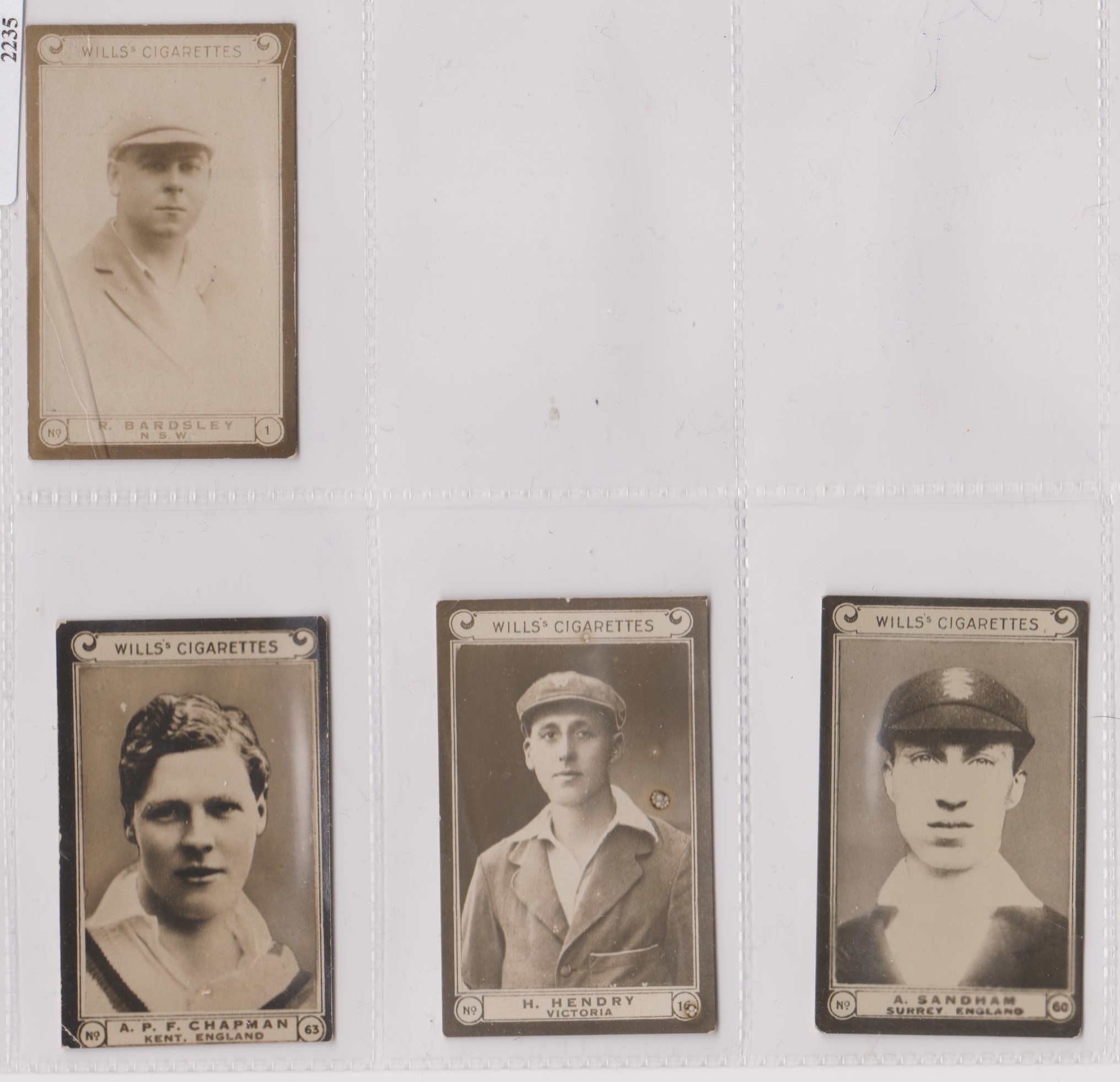 WD & HO Wills Cricketers (plain back) 1924 series 4 cards, 3 good condition, 1 with crease