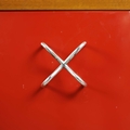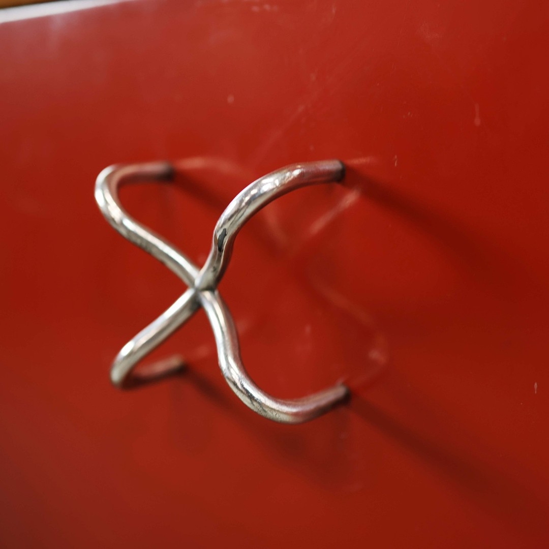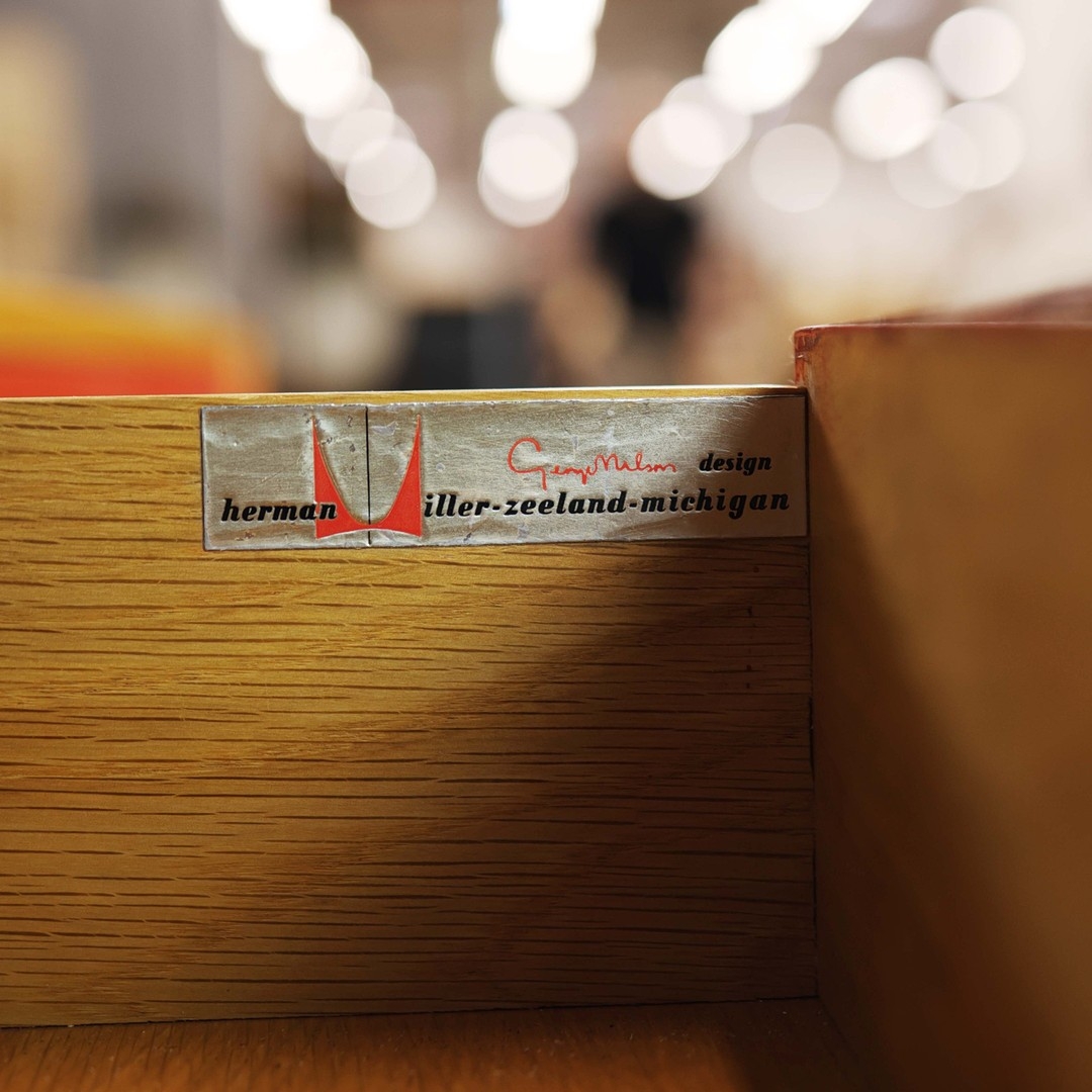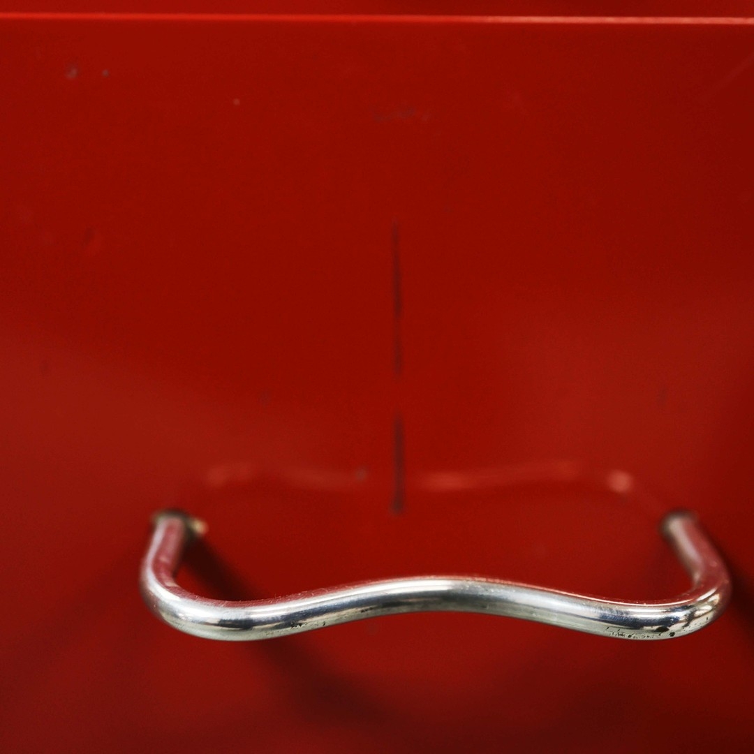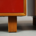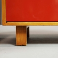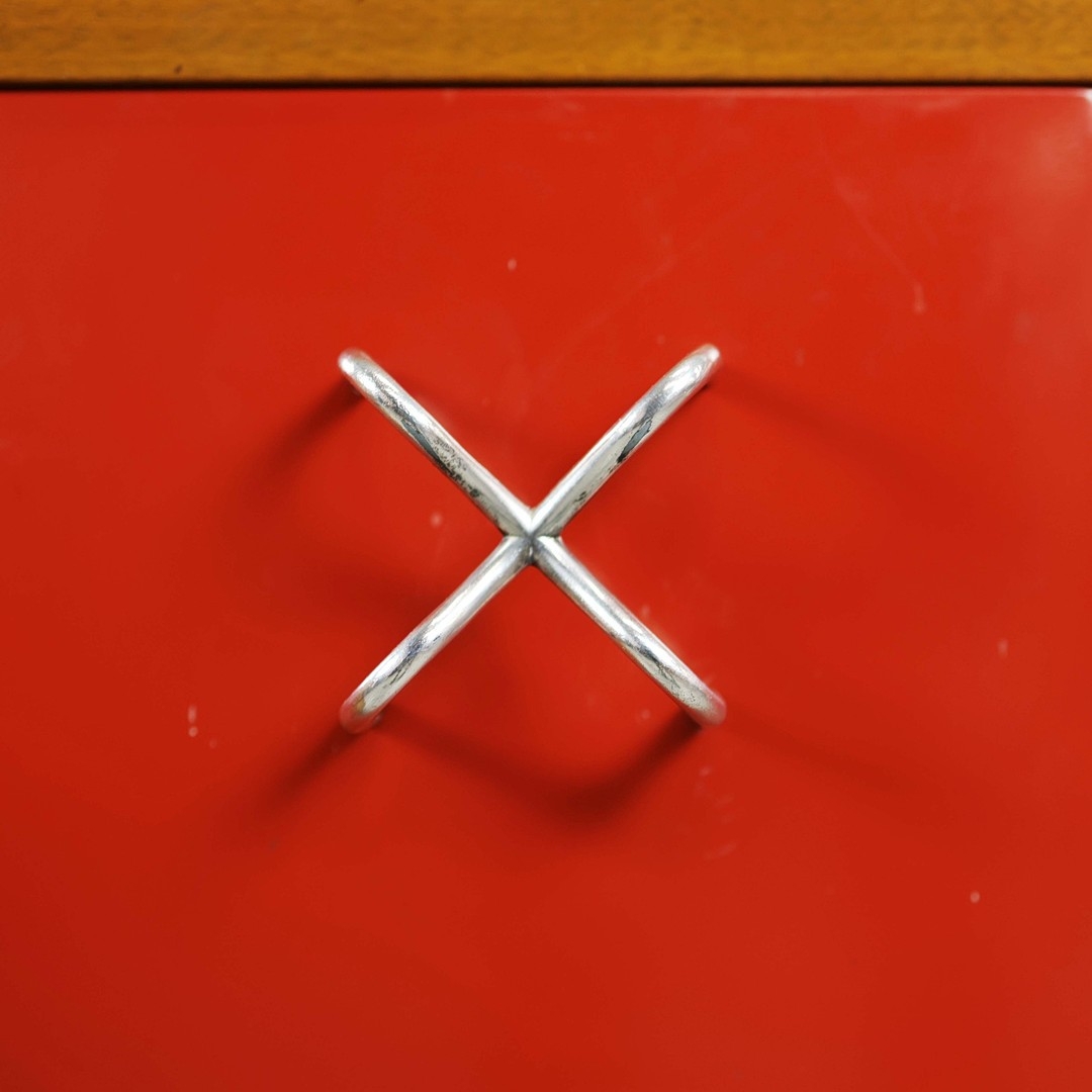 1950s GEORGE NELSON FOR HERMAN MILLER CABINET AND MATCHING CHEST. Wood and red lacquered with chrome handles Cabinet: 75cm H x 87cm W x 47cm D Chest: 75cm H x 61.5cm W x 47cm D.