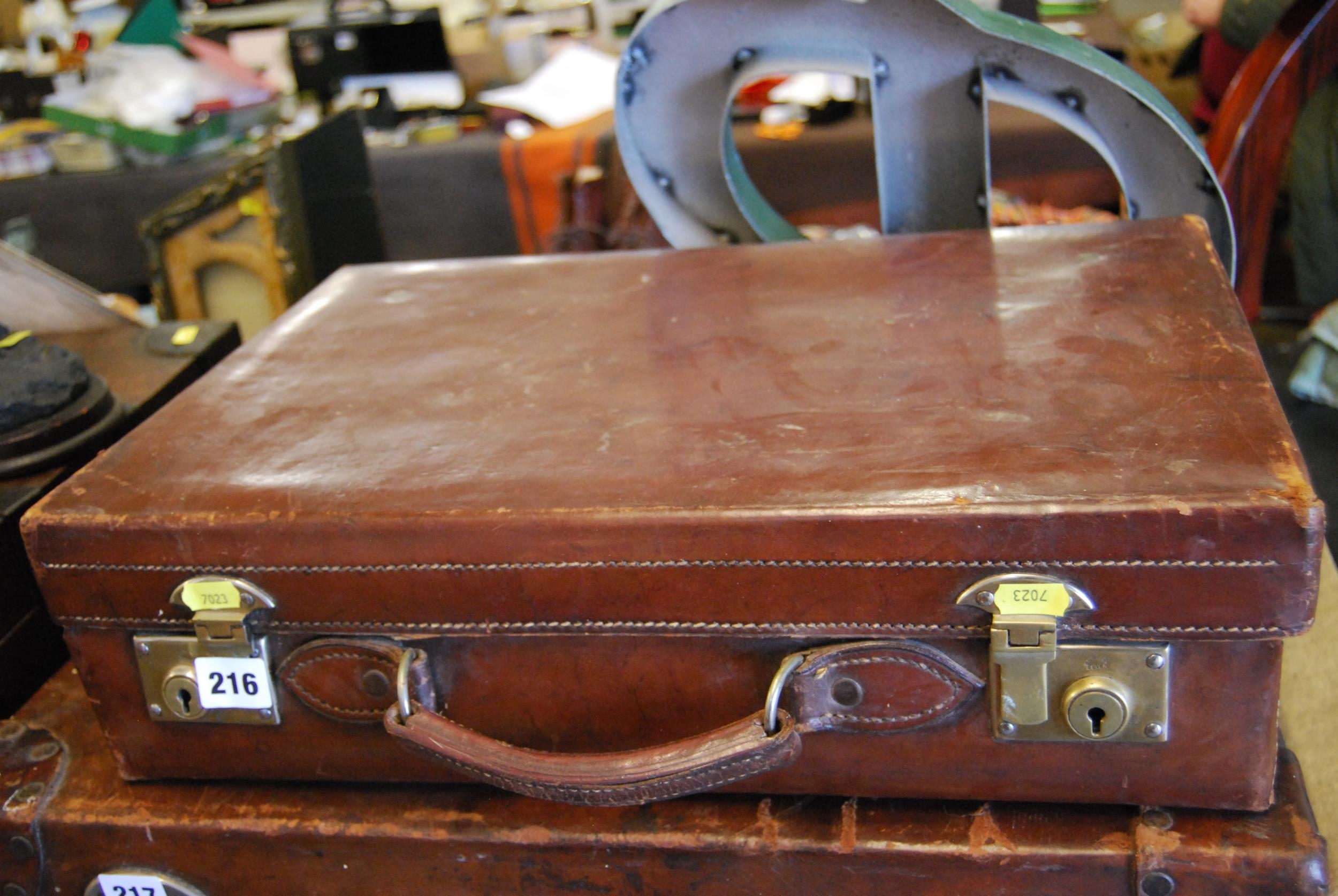 HIGH QUALITY VINTAGE LEATHER TRAVEL CASE WITH BRASS LOCKS
