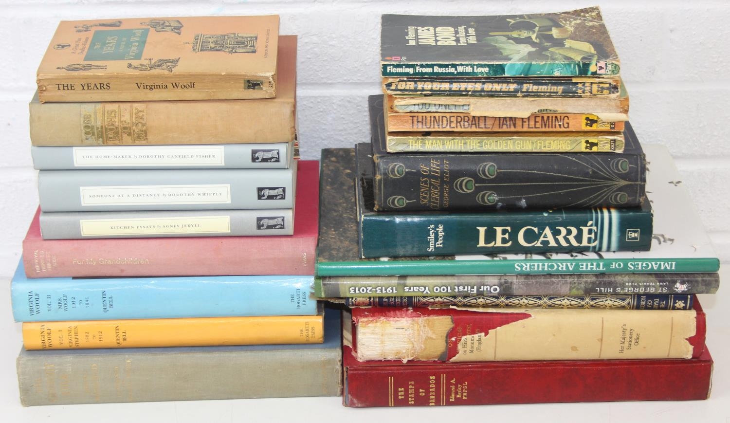 Five 1960's/1970's James Bond soft cover books published by Pan and various other books to include biography of Virginia Woolf