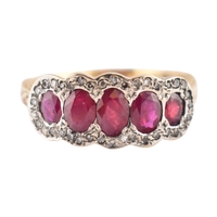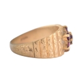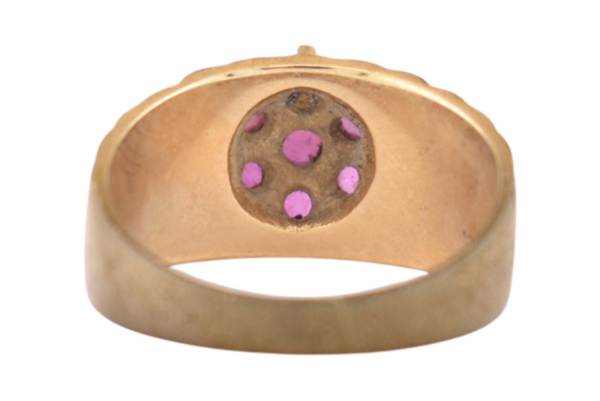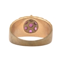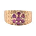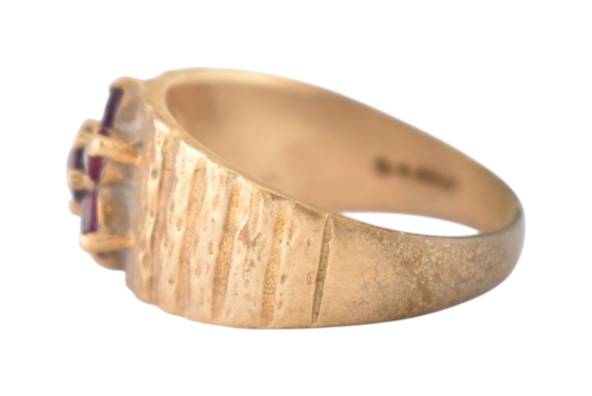 A hallmarked 9ct gold and ruby cluster ring. Hallmarked London, sponsors mark G&T.J. Weight 4.6g