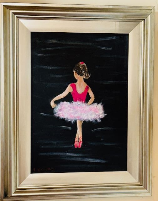 Framed J Blaney Oil on Canvas - Ballerina - 18x22"