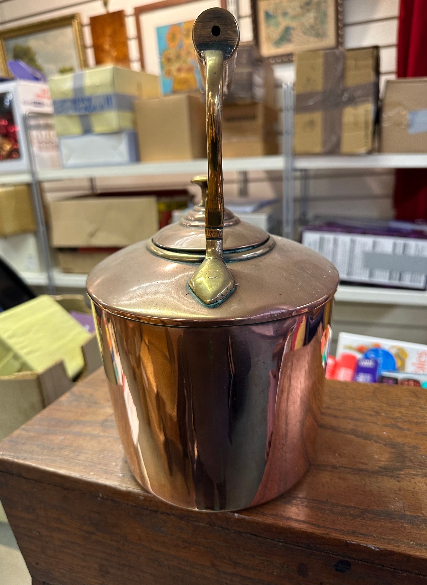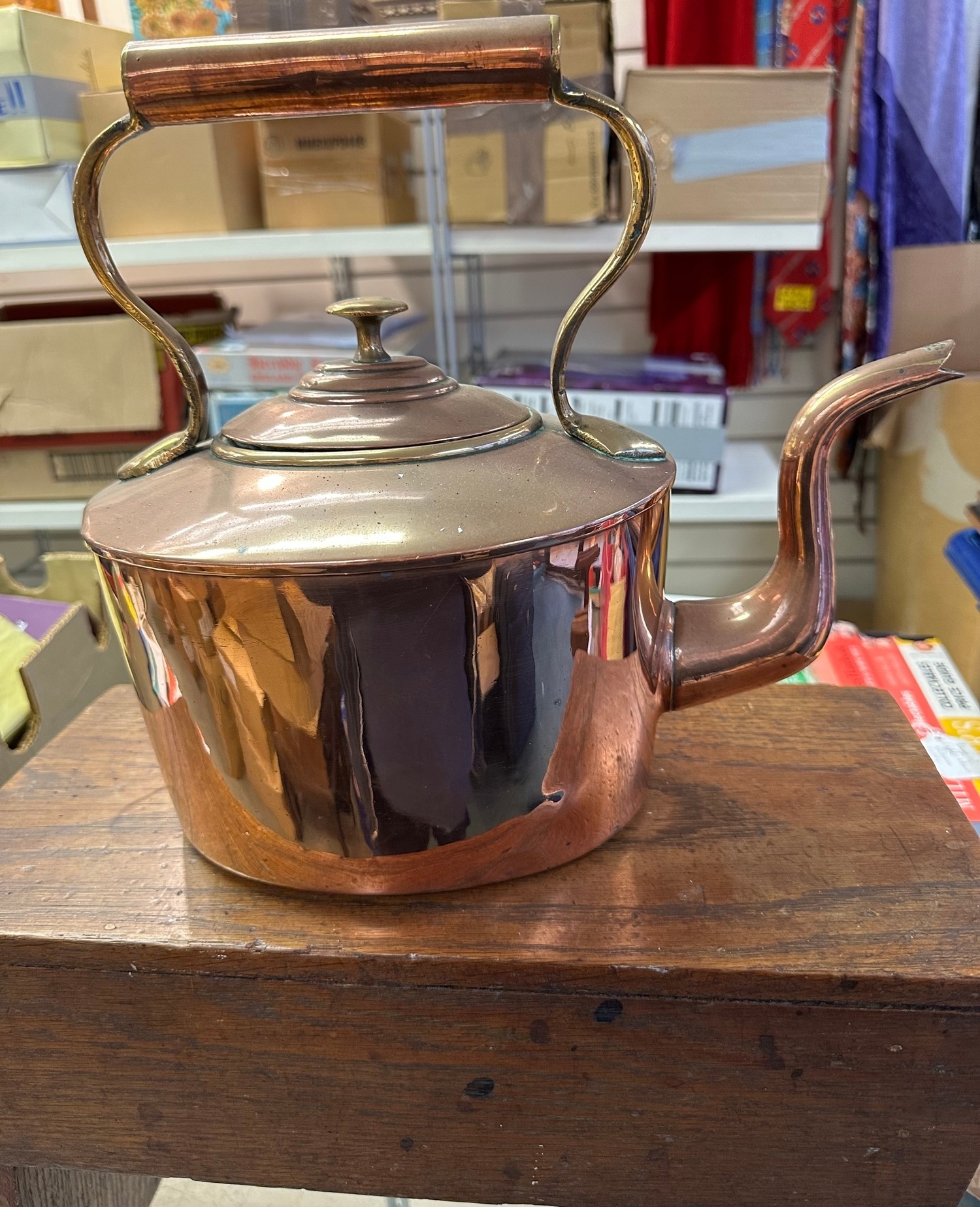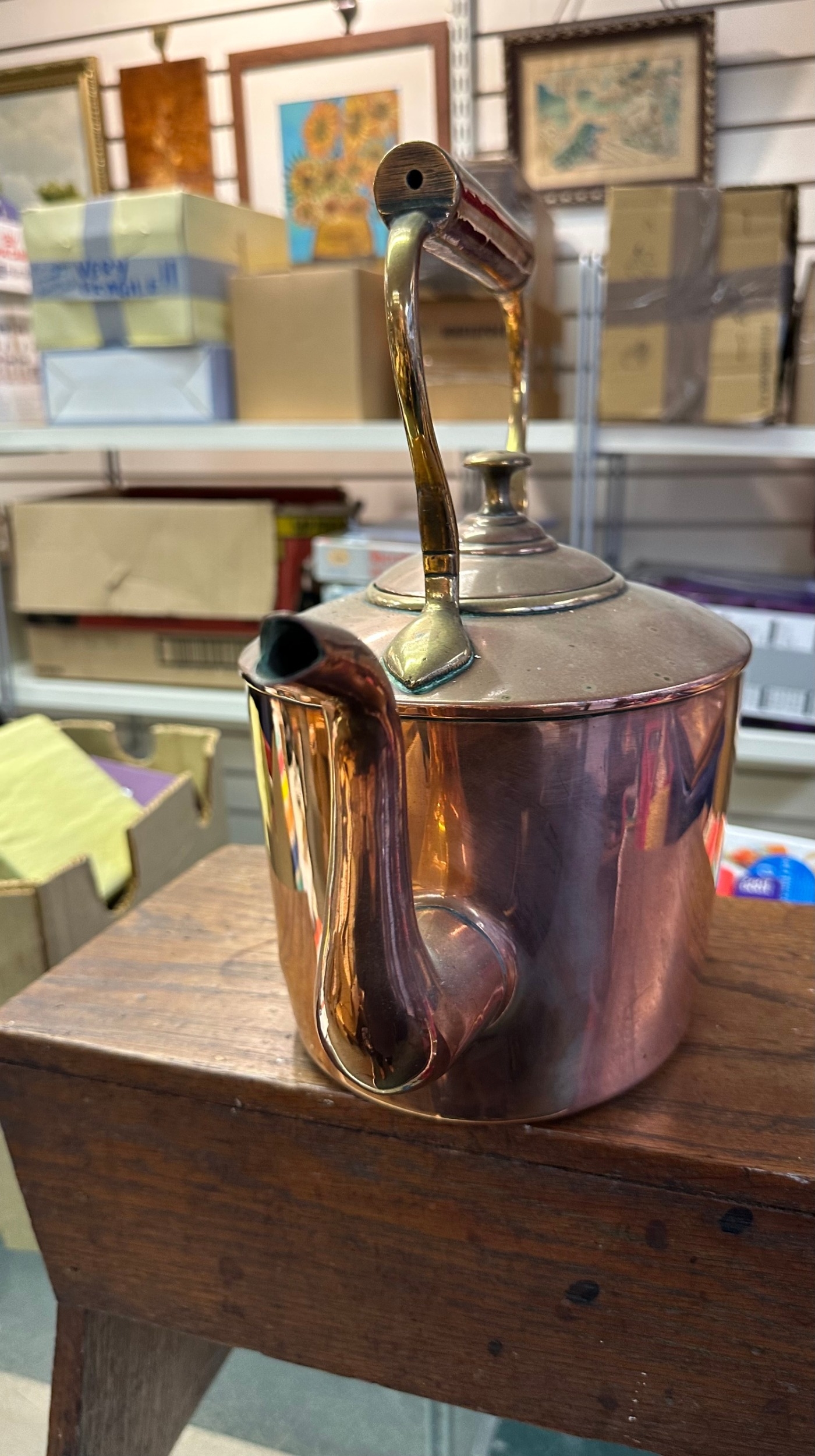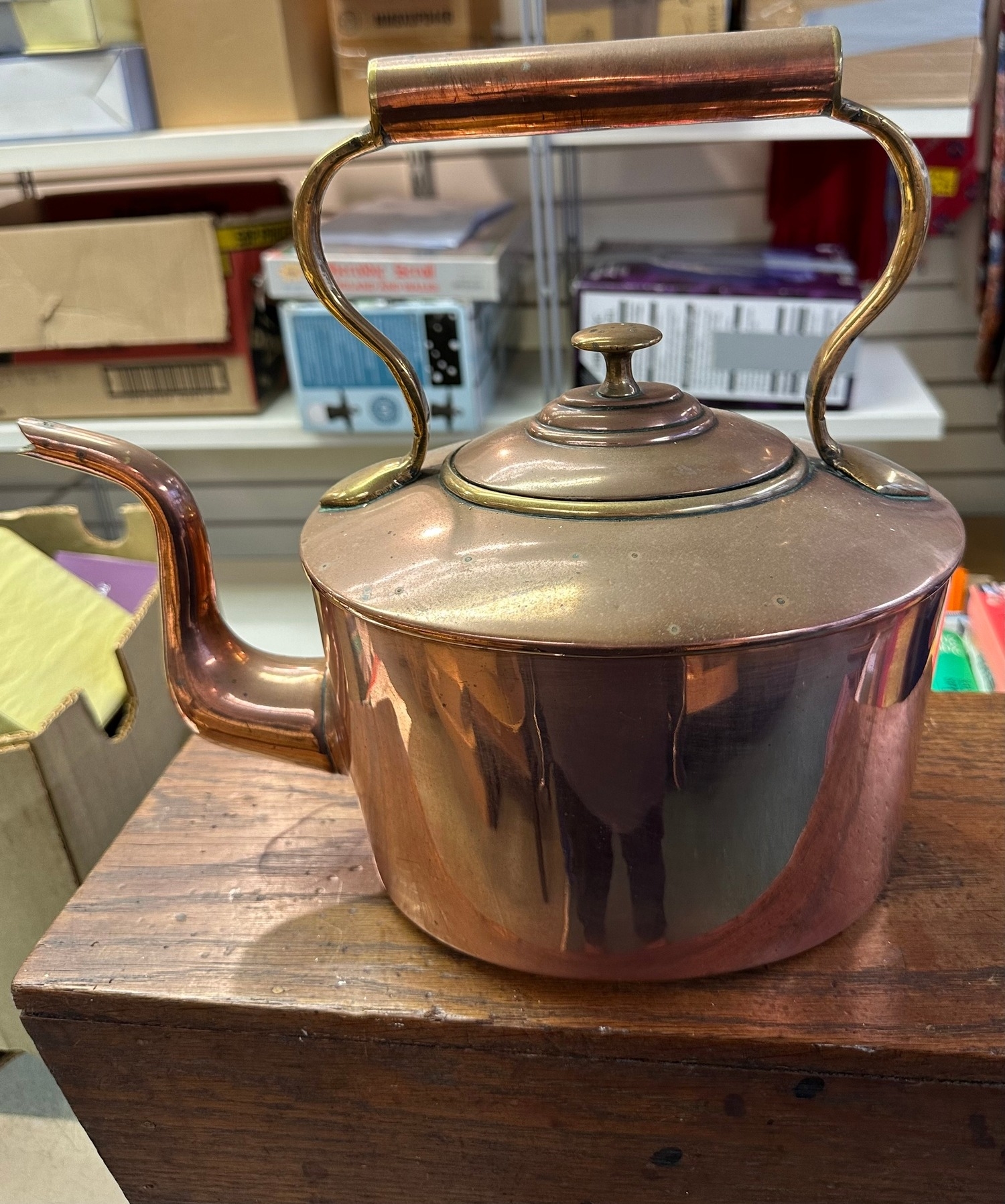 Good (Medium) sized Victorian copper kettle ( with brass handle trim )