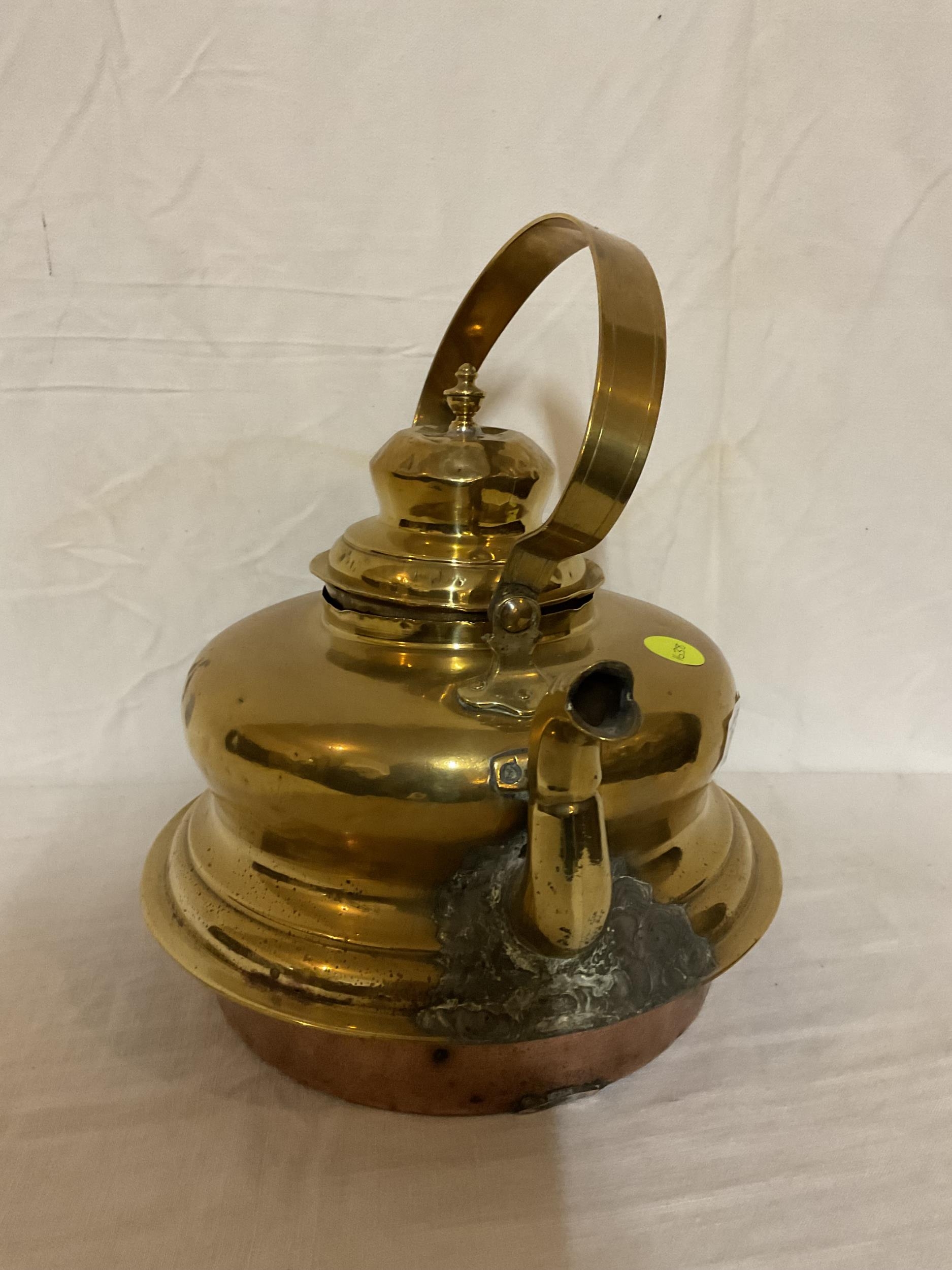 LARGE BRASS AND COPPER KETTLE A/F